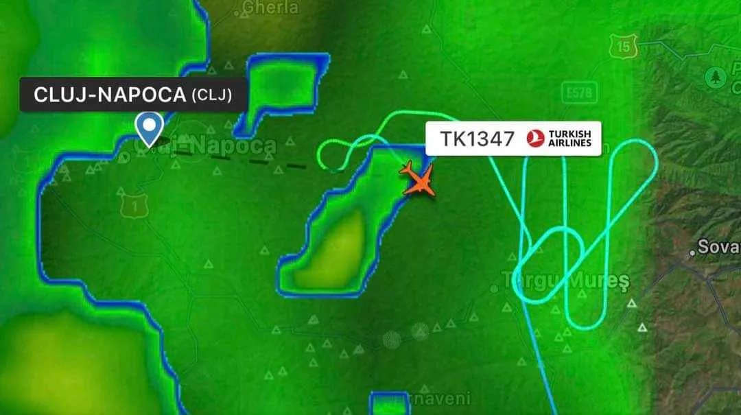 - Zborul cursei Turkish Airlines TK1347 de la Istanbul la Cluj-Napoca s-a întors după aproximativ 50 de minute de așteptare deasupra Clujului înspre Istanbul.