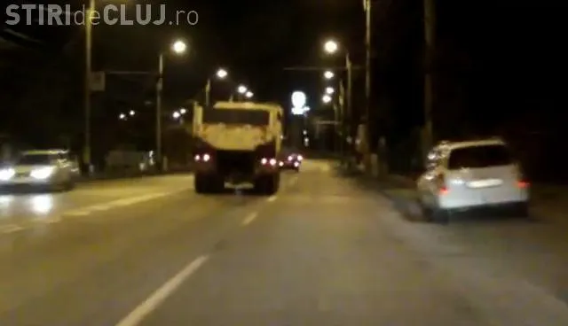 Soferul unui autoturism a vrut sa vada ce se intampla daca porneste in urmarirea basculantei, dar a renuntat intr-o curba la dreapta: "Sunt in unghi mort, nu fortez. Poate dupa curba se retrage pe banda 1 si ma scoate in decor", a spus soferul care a filmat scena.