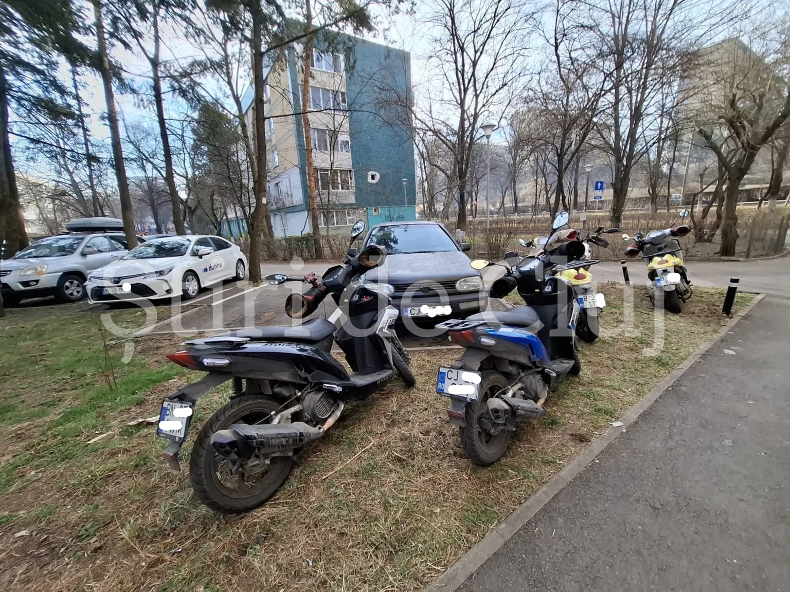 Conducătorii de scutere s-au înscris în „clubul select” al celor care parchează pe spațiile verzi, fără să țină cont de regulile urbanistice sau de disconfortul creat pentru locatarii din zonă.