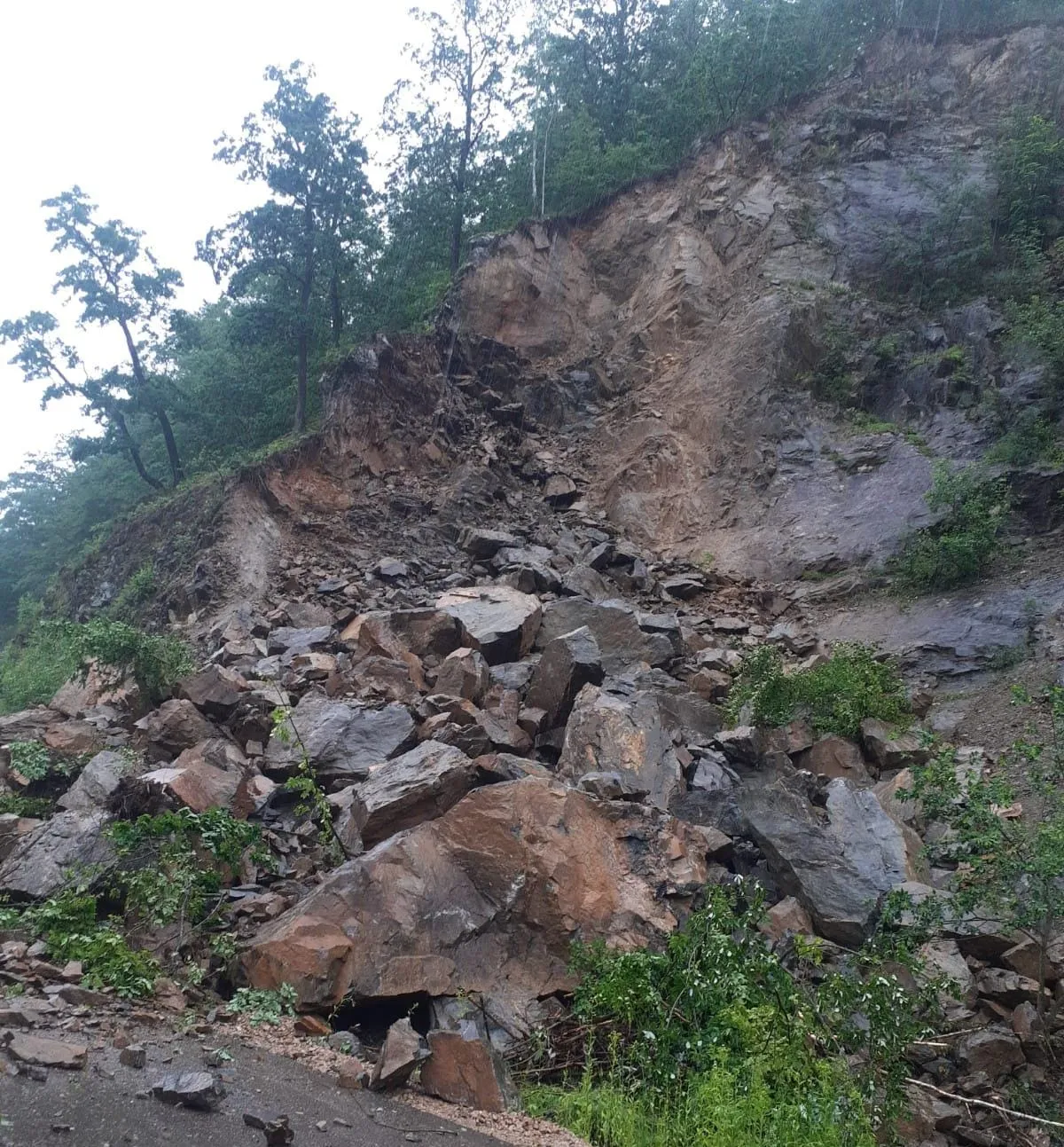 Masa de pietre a fost înlăturată cu ajutorul unui excavator, a unui buldozer și a patru camioane de mare tonaj. Arborii au fost înlăturați de echipajul de pompieri ce a acționat în zonă.