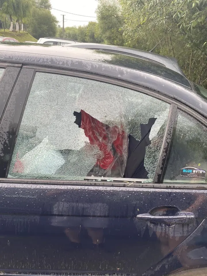 Altcineva a publicat chiar o fotografie cu geamul spart de la mașină: „Tot așa, o pietricică, care a sărit de la coasă”.