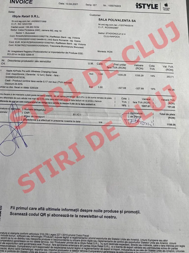 Sala Polivalentă Cluj și-a cheltuit bugetul pe băutură și gadget -uri, dar l-a dat afară pe un angajat pentru a face economii - FOTO FACTURI