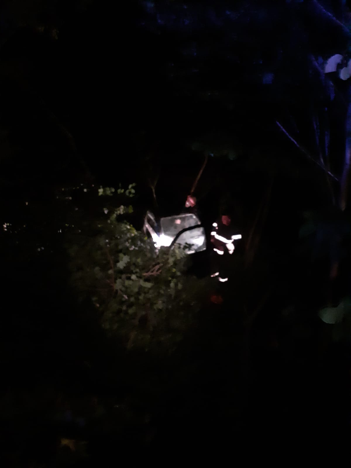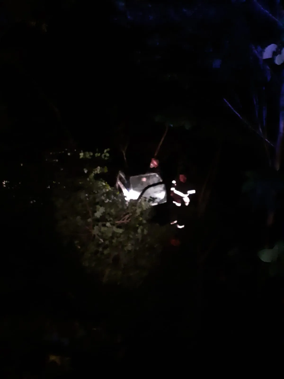 Pompierii au fost alertați în jurul orei 1.20, iar în momentul sosirii la fața locului au găsit un autoturism căzut într-o râpă cu o adâncime de cca 3 m, în care se aflau două persoane care prezentau traumatisme la nivelul picioarelor și care necesitau extragerea cu echipamentele speciale.