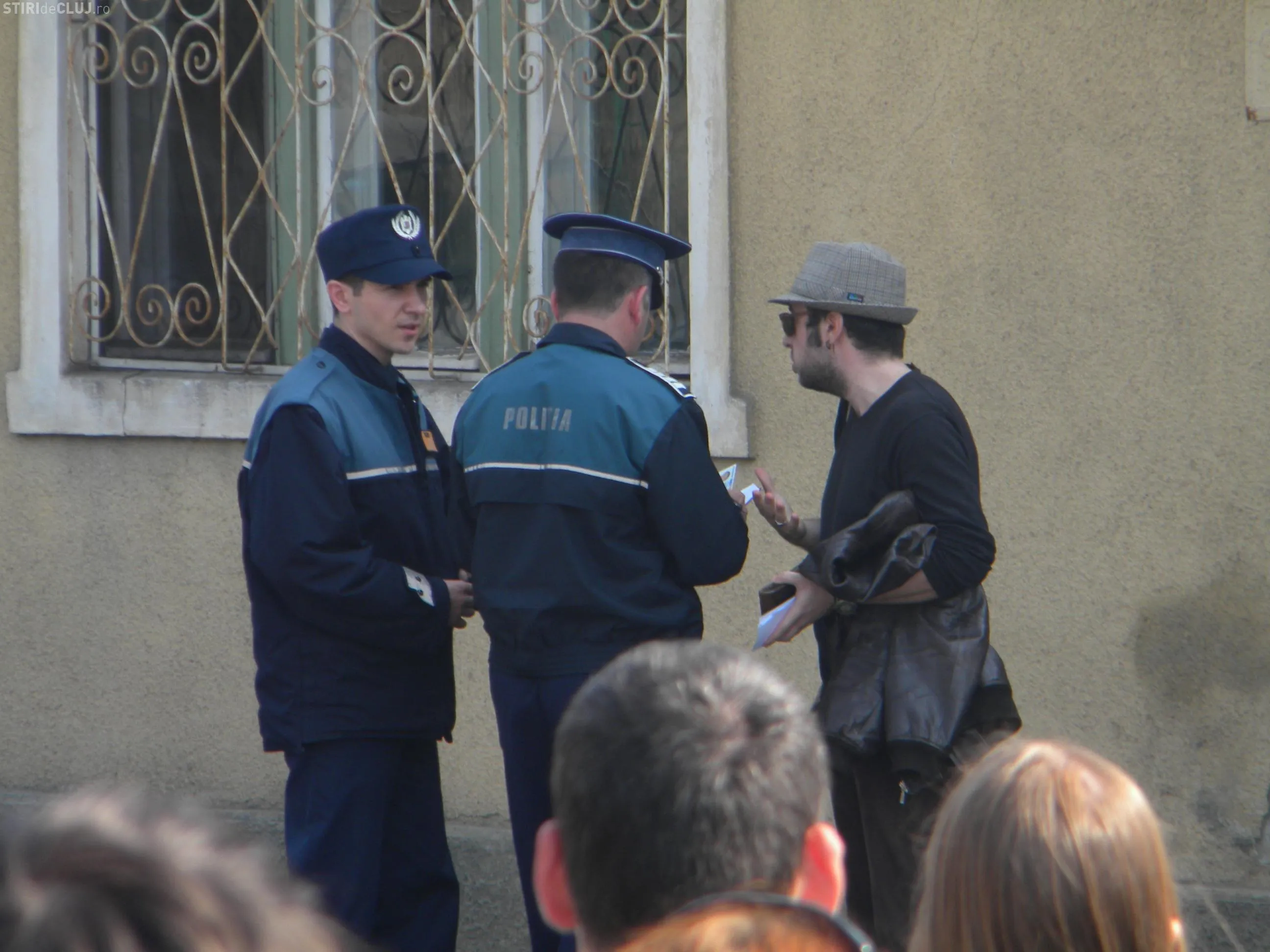 Dupa circa o jumatate de ora de la inceperea protestelor, la fata locului si-au facut aparitia si cateva echipaje de politie. Unul dintre protestatari a fost legitimat pentru ca a trecut "ilegal" strada.