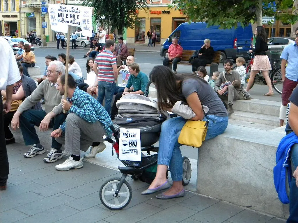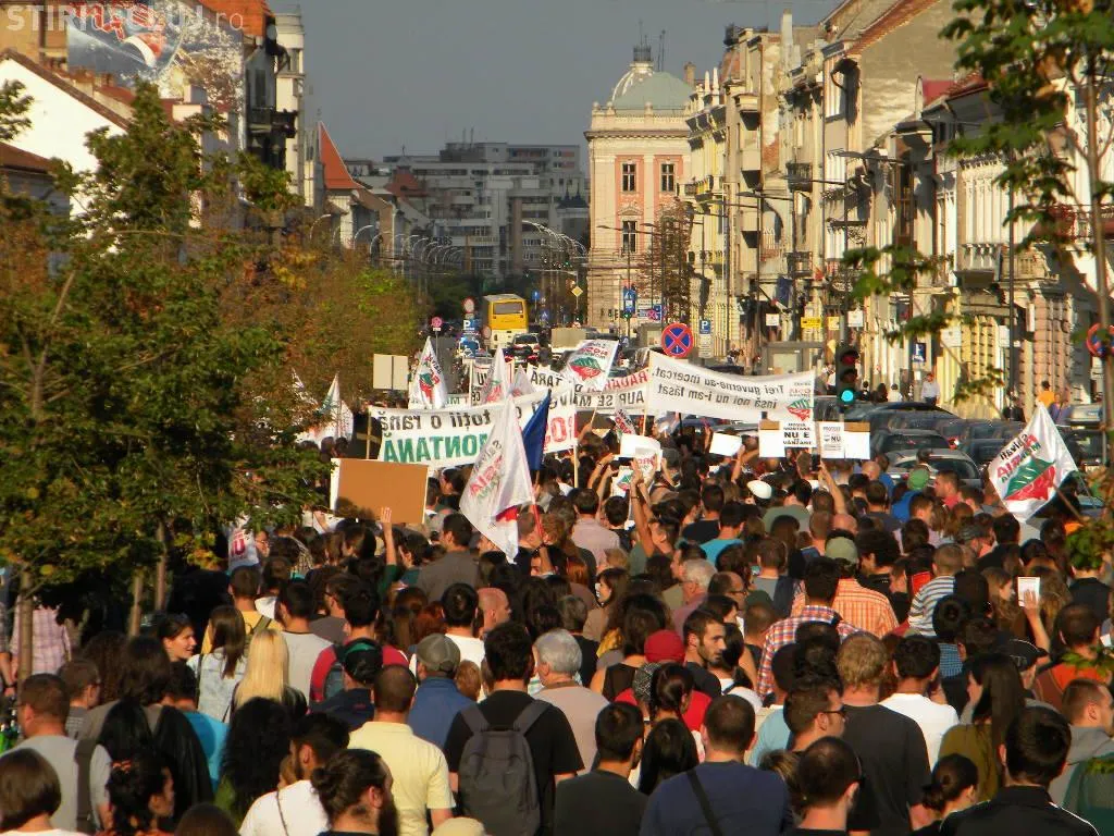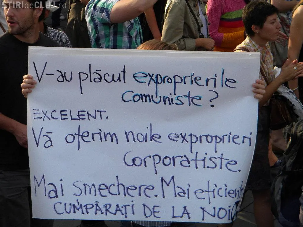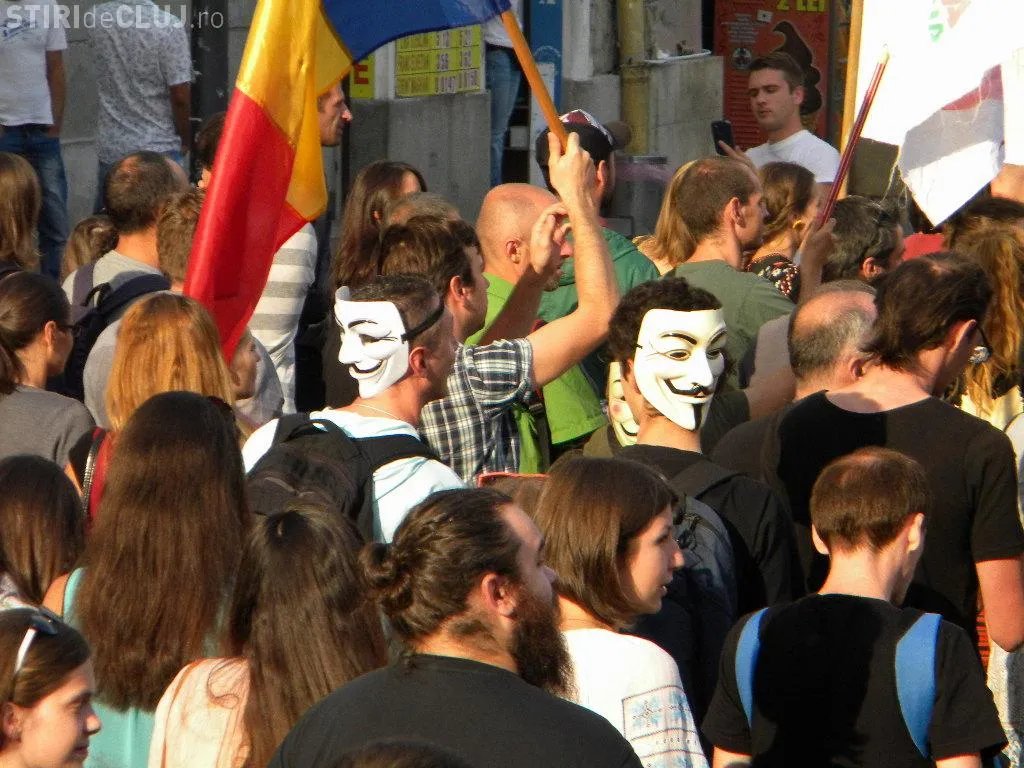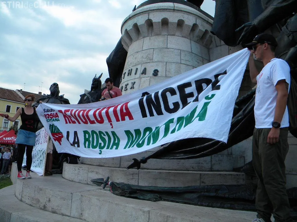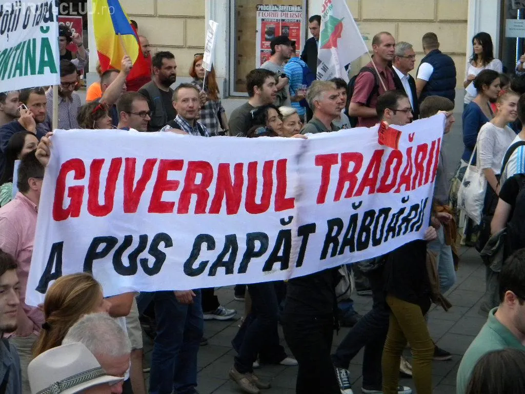 Mulțimea s-a strâns în Piața Unirii la ora 17.00, iar după circa o oră de scandări împotriva clasei politice care susține proiectul, protestatarii au pornit într-un marș prin centrul Clujului.