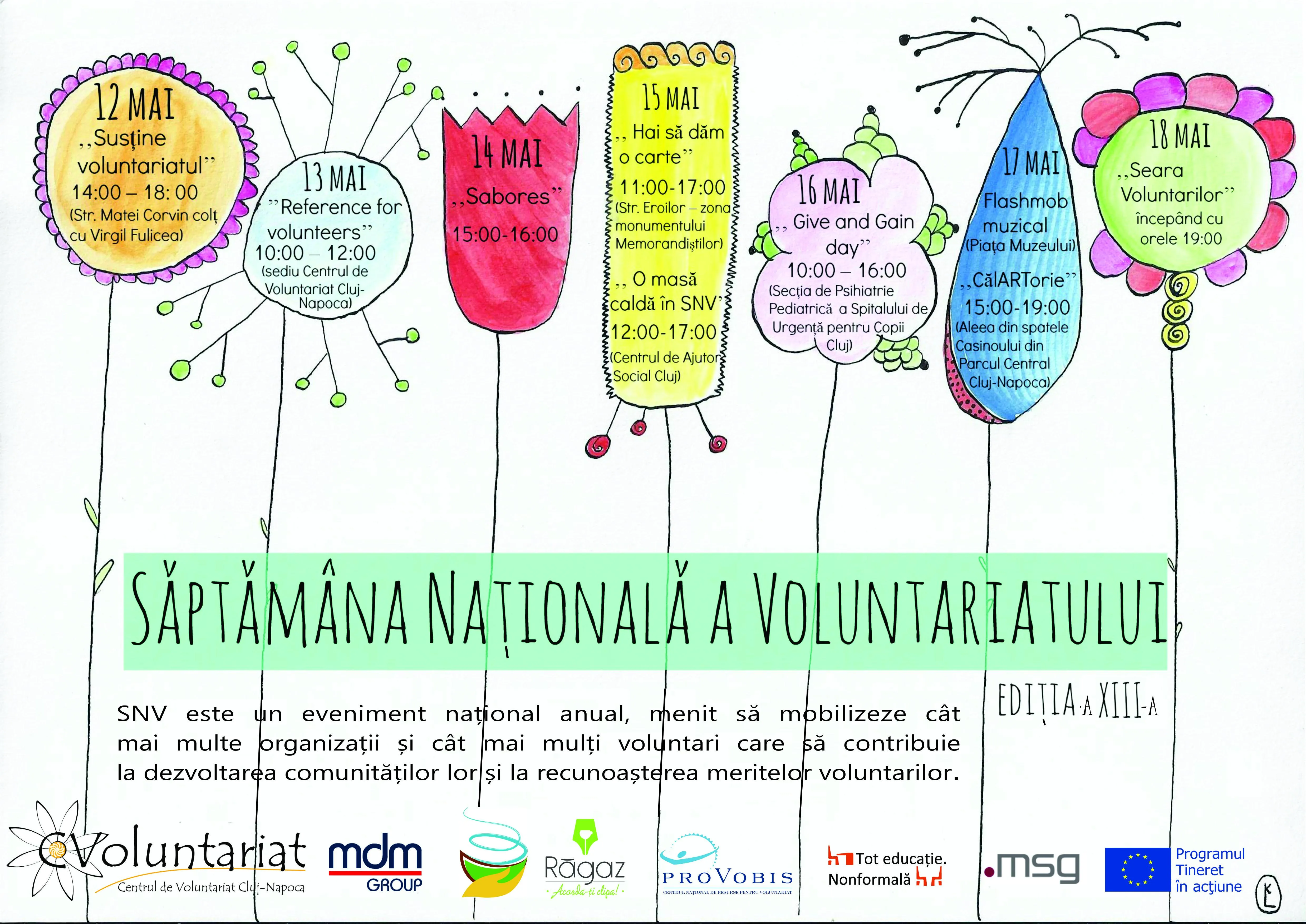 Clujul va fi plin de evenimente de voluntariat în săptămâna următoare, cu ocazia celei de-a XIII-1 ediții a Săptămânii Naționale a Voluntariatului, organizat de Centrul de Voluntariat Cluj-Napoca.