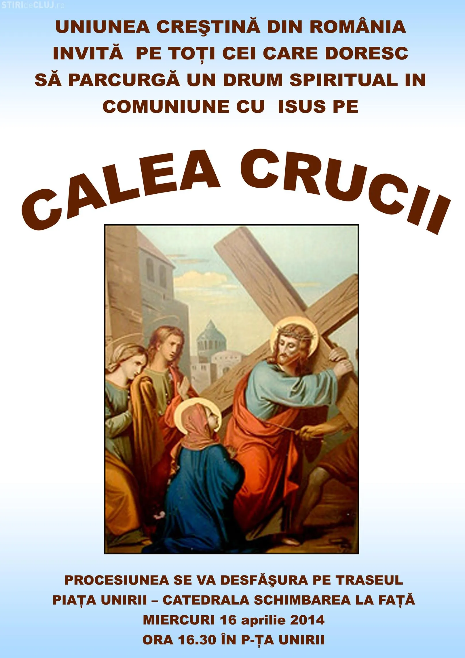 Episcopia Greco-Catolică de Cluj-Gherla îi invită pe toţi cei care doresc să parcurgă un drum spiritual împreună cu Isus pe Calea Crucii prin Cluj-Napoca, să ia parte la procesiunea de miercuri.