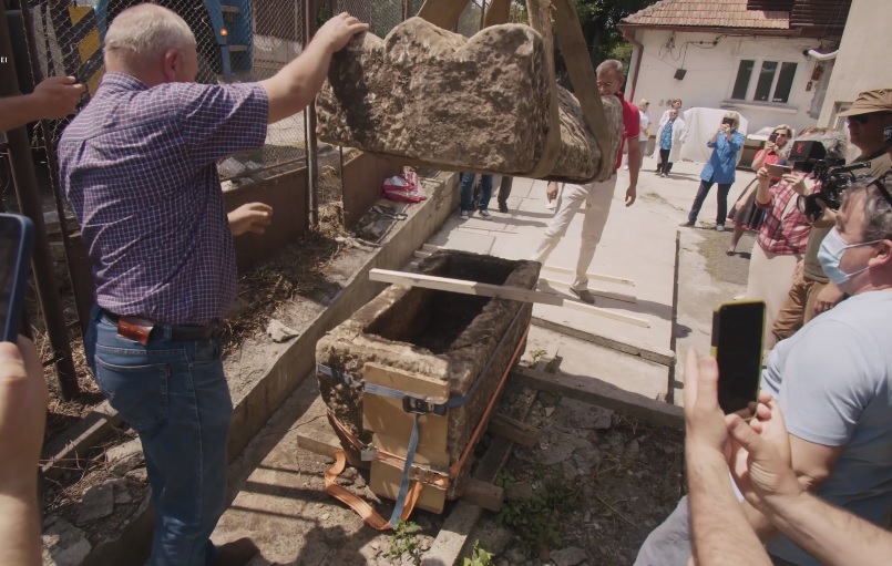 Sarcofag roman intact descoperit în fața Clinicii Stanca, pe Bulevardul 21 Decembrie 1989 - VIDEO