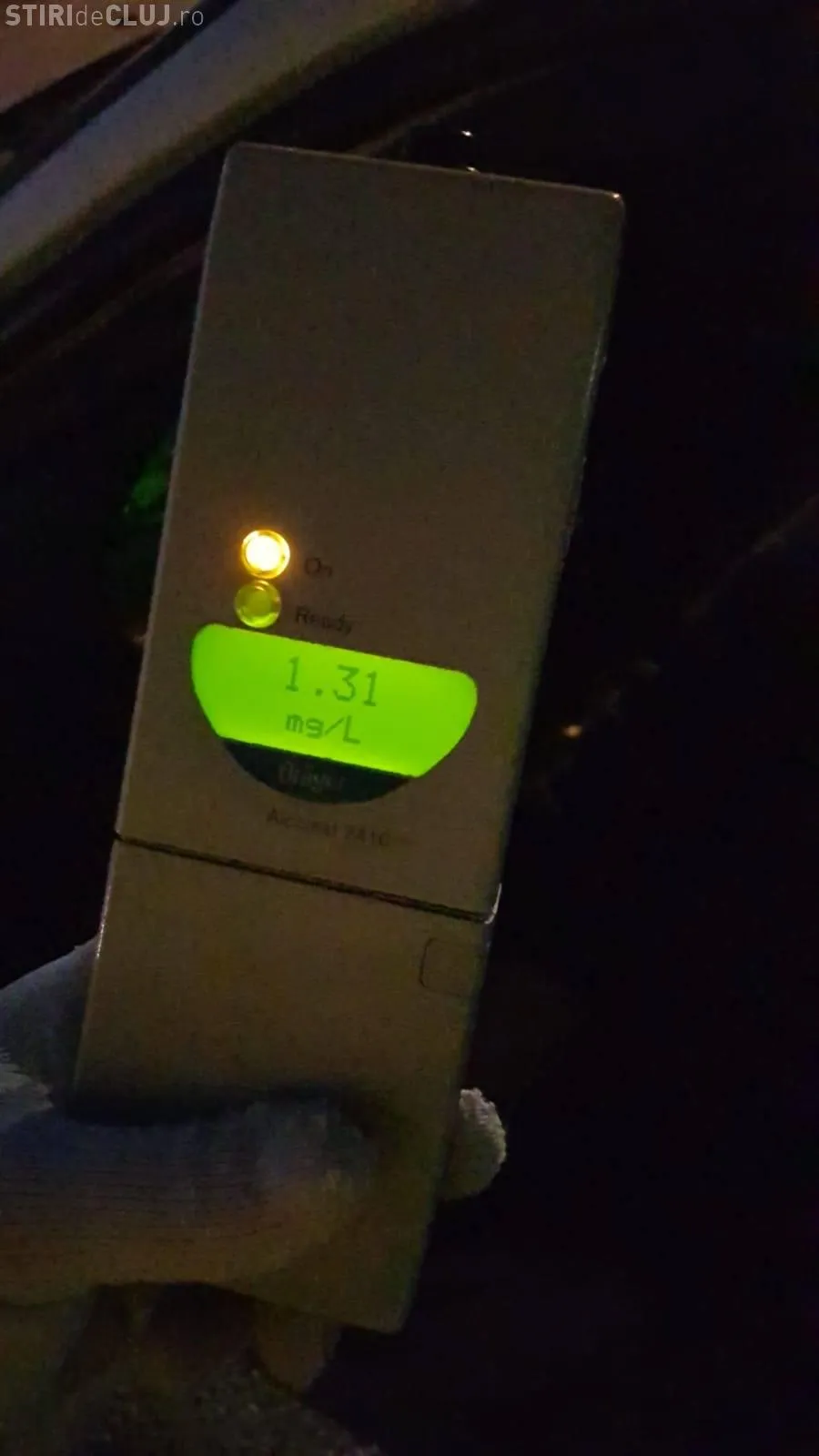 Astfel, în jurul orei 23:00, a fost depistat un şofer (bărbat - 41 ani, din Chinteni) conducând un autovehicul pe strada Oaşului, având o concentraţie de 1,25 mg/l alcool pur în aerul expirat. Acesta a fost reţinut pentru 24 de ore de către poliţişti.