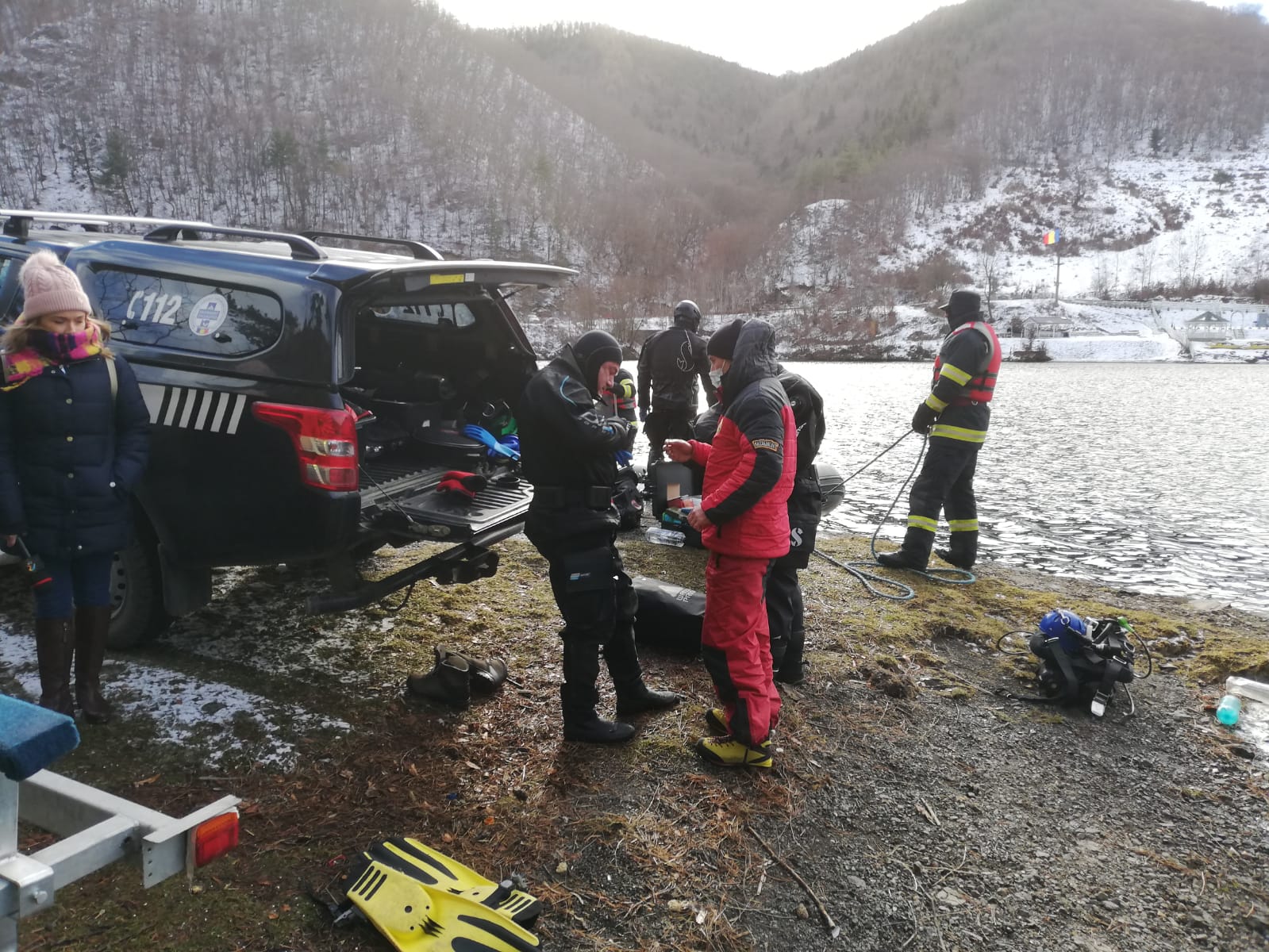 ”Scafandrii Salvamont-Salvaspeo în colaborare cu echipajele ISU și IPJ au reluat căutările în lacul Someșul Cald. Se vor efectua căutări pentru a exclude posibilitatea de a fi fost și cea de-a treia persoană în autoturism și, concomitent, se vor desfășura operațiuni pentru a extrage autoturismul din apă”, anunță cei de la ISU Cluj.