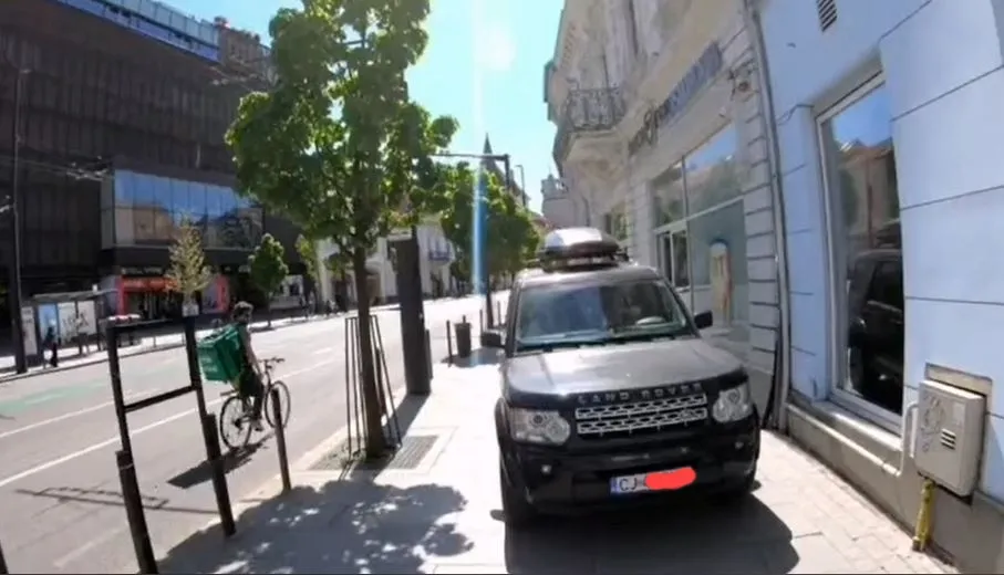 În drumul său pe trotuar, youtuberul a fost încurcat de mașina, un SUV Land Rover, care oprise , vis-a-vis de magazinul Central, ocupând mare parte din trotuar.