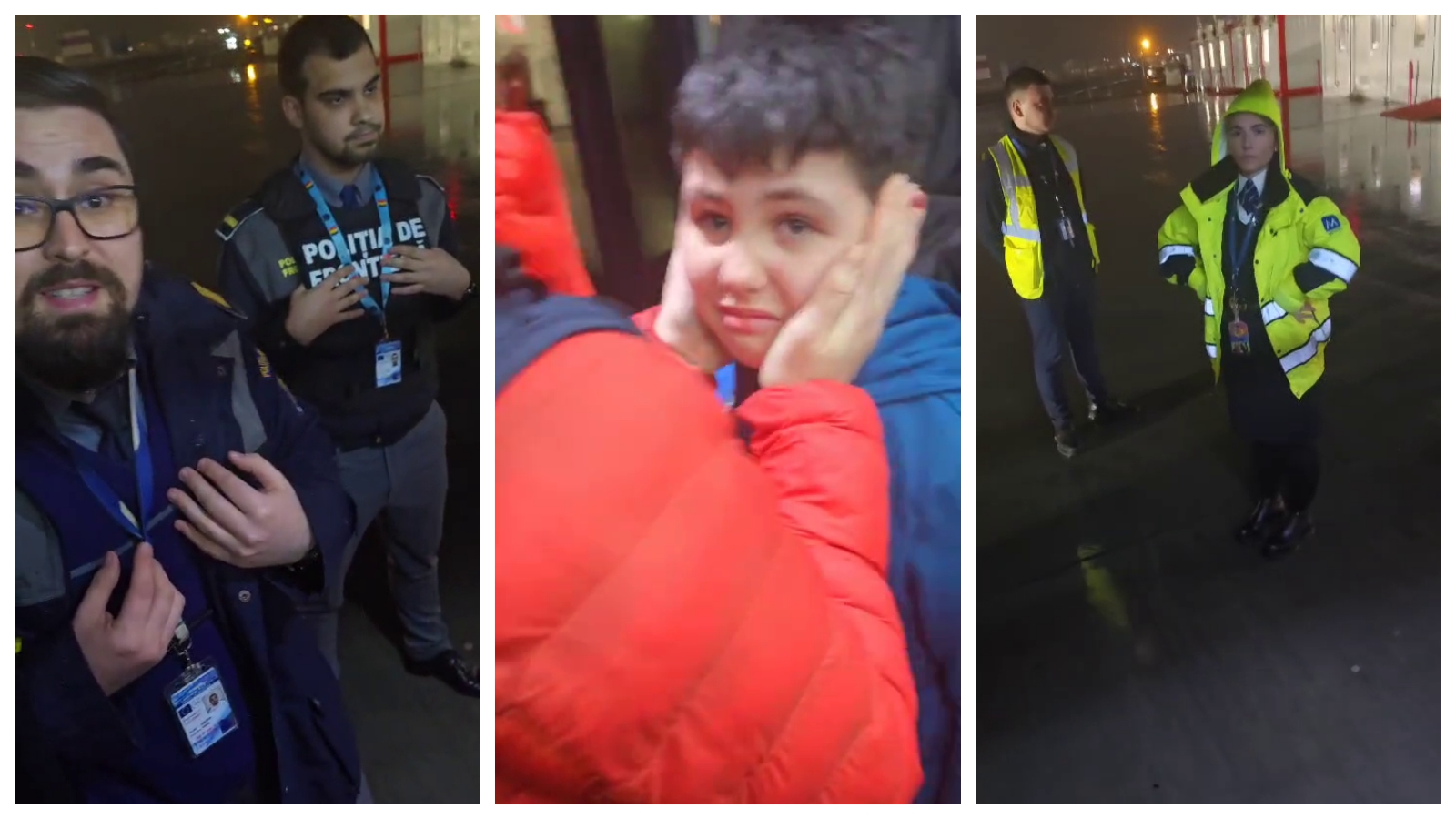 Acesta ne-a relatat că apoi a forțat urcarea în autobuzul care să îi ducă spre avion, dar angajatele de la Menzies Aviation au venit după ei și le-au cerut să coboare pentru că nu vor mai zbura spre Anglia. ”În acel moment au început toți călătorii din autobuz sa se revolte si să acuze pe doamna si colegi ei de faptul ca comit un abuz si ca ei sunt martori la jignirile adresate copilului nostru cât și nouă personal… A fost o ”luptă” de circa 20 de minute din partea personalului ca să ne de-a jos din autobuz… Într-un final au venit cei de la Poliția de Frontieră, chemați în ajutor de către doamna agresivă. Domnii de la poliție ne-am îmbrâncit afară din autobuz, iar în acel moment, într-un moment de neatening și agitație, doamna de la bagaje i-a băgat degetele în ochi copilului meu strigând către soția mea ”de ce loviți pe colega” fără că acest lucru sa se fi intamplat...Tot in acel moment, majoritatea calatorilor aflați în autobuz s-au dat jos mentionand faptul ca în semn de protest nici ei nu o sa mai călătorească, moment în care politia de frontieră îi împingea cu forța efectiv în autobuz… Într-un final am cedat si m-am conformat abuzului comis de poliția de frontieră îndrumați de doamna de la Menzies Aviation”, a mai spus bărbatul, în plângerea adresată Știri de Cluj.