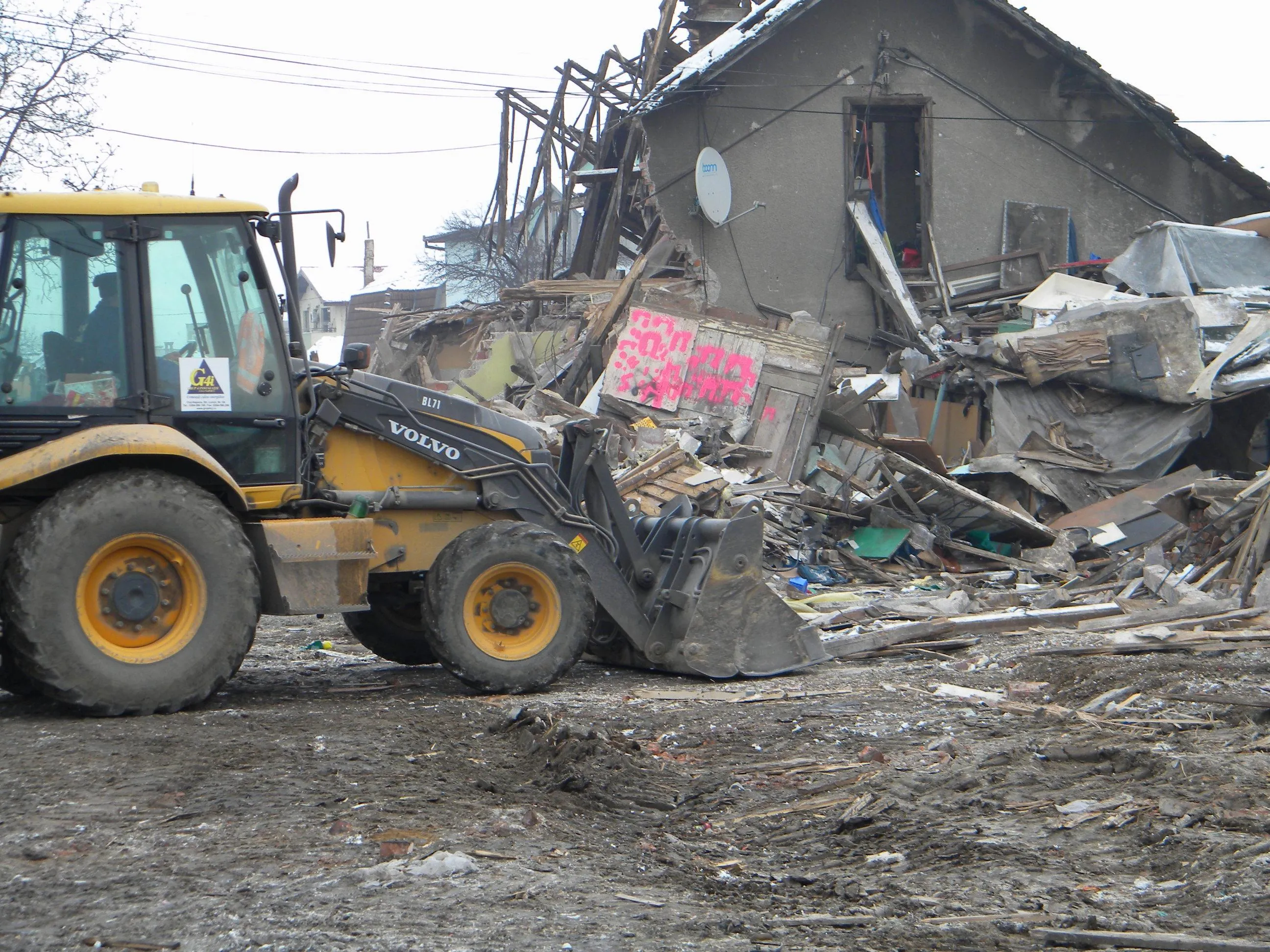 Utilajele firmei angajate de primaria Cluj Napoca pentru a demola locuintele improvizate de pe strada Coastei au inceput lucrul sambata. Directorul Politiei Comunitare Cluj, Minodora Fritea, a declarat pentru Stiri de Cluj ca lucrul merge mai greu pentru ca tiganii sunt lasati sa isi mai ia din lucruri.