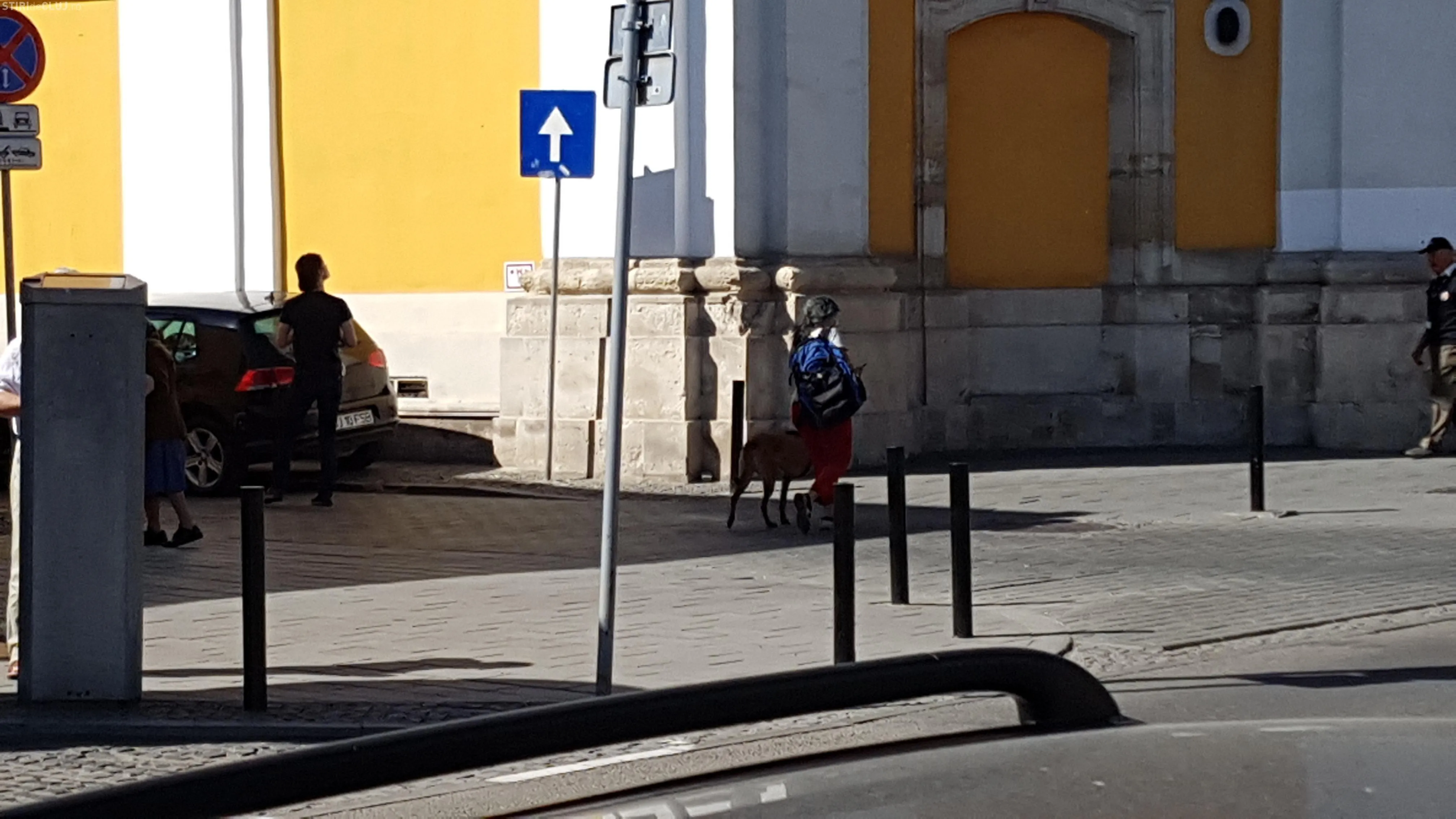 Șoferița a sunat la 112 și a început să înventeze că a fost amenințată și că ”un om violent” i-a luat locul de parcare. Între timp, șoferul ”violent” asista năuc la toată scena și nu știa cum să plece mai repede. Până la urmă a fost ghidat de alți trecători și a putut să plece. Șoferița a parcat fericită, și-a luat câinele ghid și a plecat, care părea special antrenat. La telefon insista că are nevoie de locul de parcare pentru o urgență, iar apoi a plecat spre Piața Unirii.