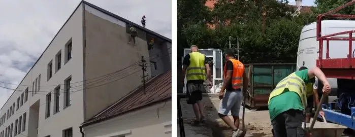 Scandal pe un șantier din Cluj-Napoca! Muncitorii urlă de pe schelă și trezesc tot cartierul: „Nu au obligația să folosească stații de comunicare?”