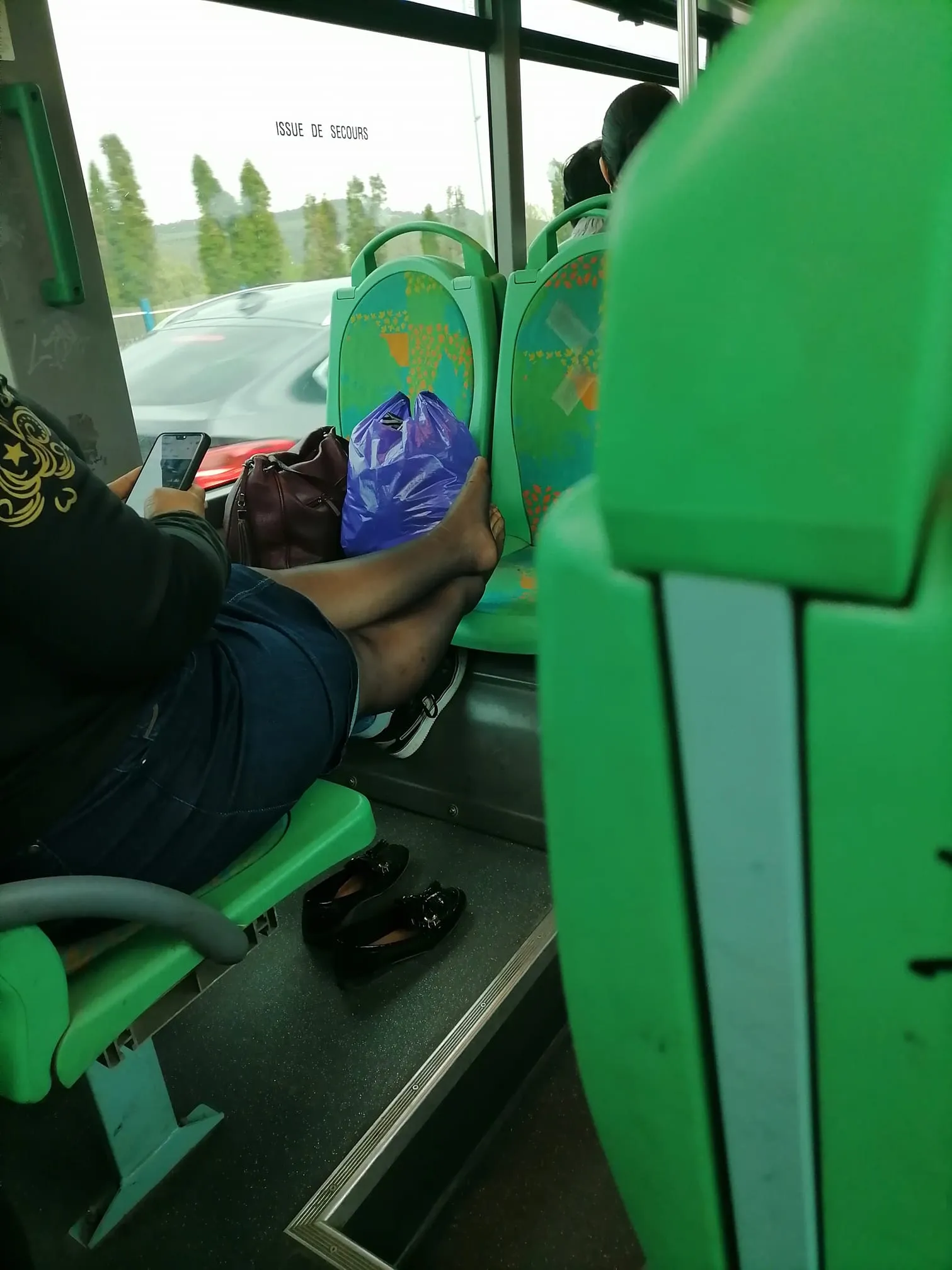 O femeie a fost fotografiată într-un autobuz care mergea spre Florești, în timp ce stătea cu picioarele pe scaunul din față.