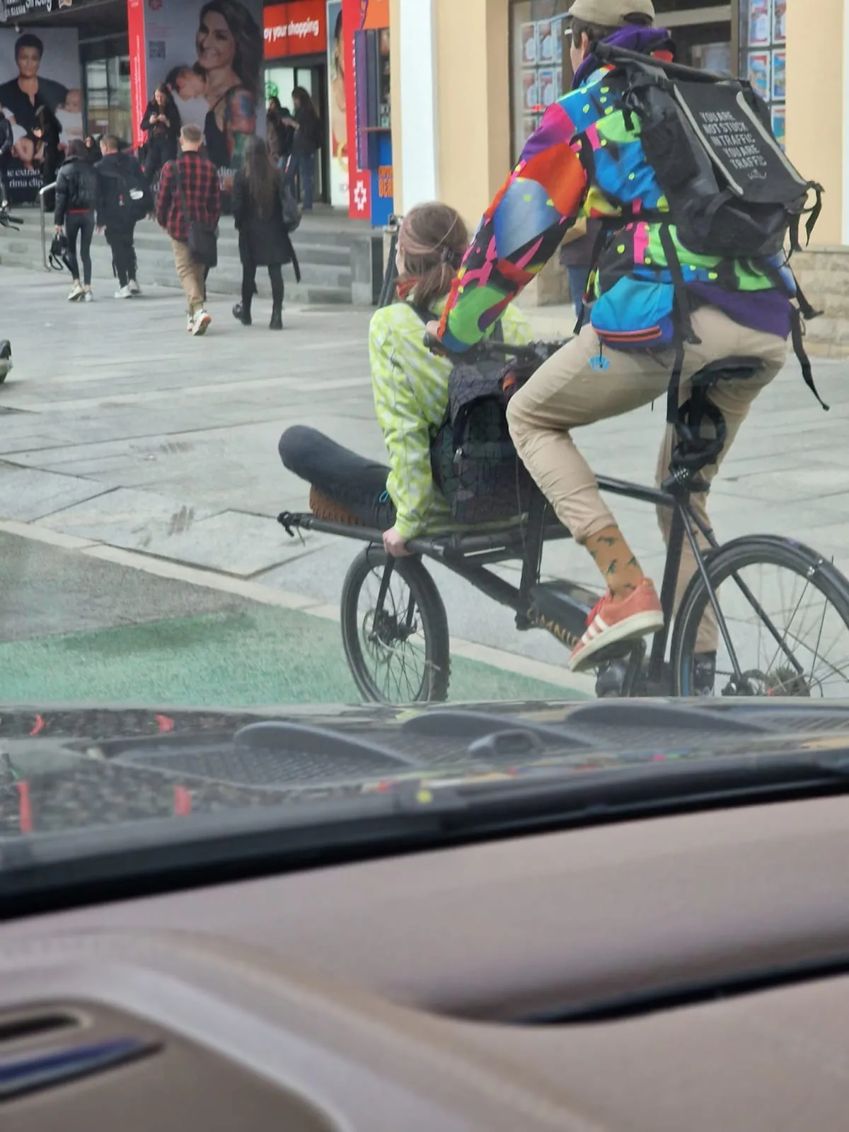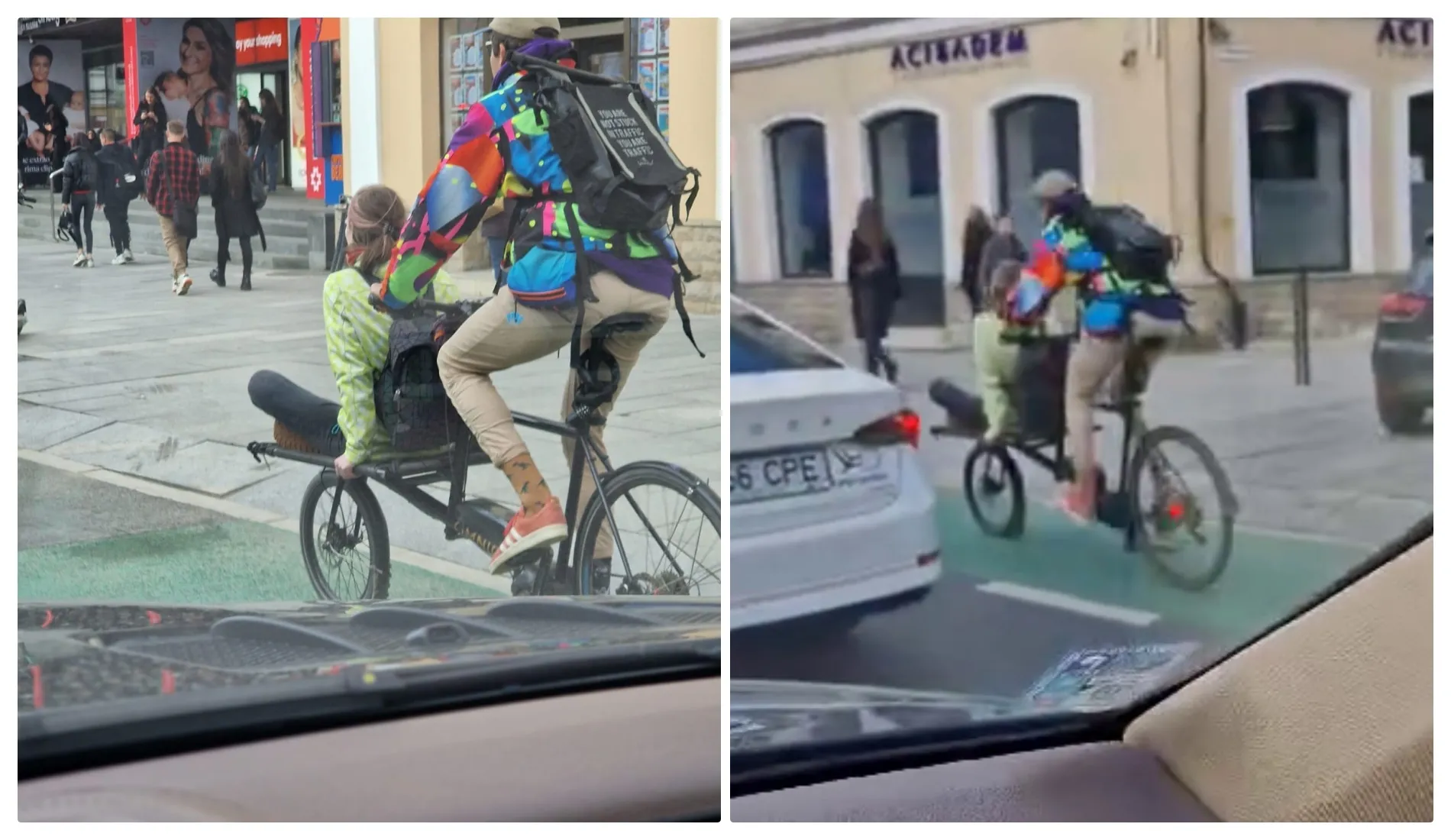 Clujenii sunt inventivi, dar își și pun viața în pericol în mod nejustificat. Un cuplu a fost filmat în centrul orașului în timp ce circula cu o bicicletă, în timp ce tânăra era așezată într-un fel de ataș, în partea frontală.