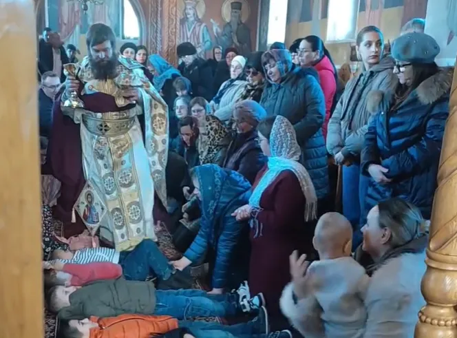Se întâmplă în România! Scene incredibile într-o biserică ortodoxă din România: Copii întinși pe jos, în timp ce preotul trece peste ei