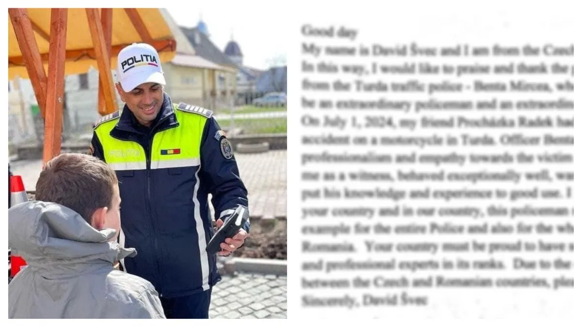 Scrisoare de mulțumire primită de un polițist clujean direct din Cehia. Cum a reușit Mircea să ajute și impresioneze doi turiști - FOTO