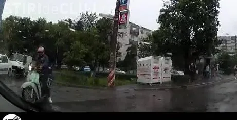 Scuterist inconștient, aproape să fie lovit de mașină la Cluj VIDEO