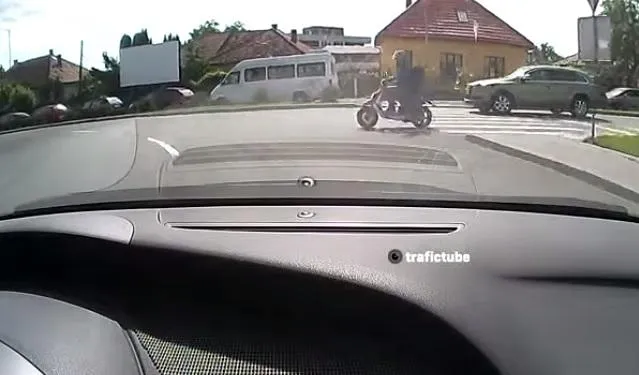 Cu toate acestea, vina îi aparține celui de pe scuter, care își pune viața în pericol, conducând fără a părea că știe regulile de circulație, conform trafictube.ro.