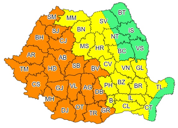 Meteorologii de la ANM au emis o nouă serie de avertismente de tip cod galben și cod portocaliu de ploi torențiale, care afectează aproape toată țara.