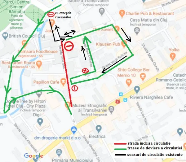 Măsura închiderii circulației se va aplica cu excepția riveranilor străzii Constantin Daicoviciu și a celor din zona Pieței Muzeului.