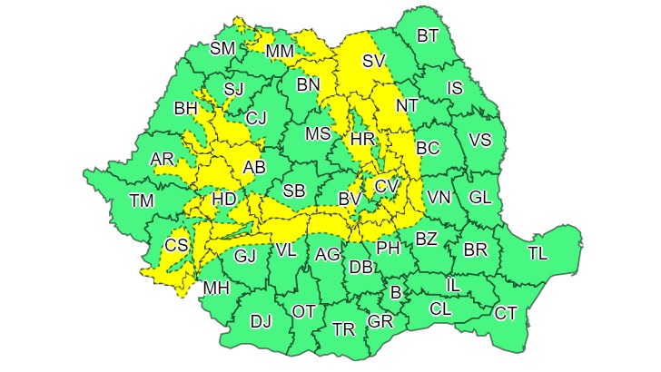 Meteorologii de la ANM au emis o serie de avertismente de tip cod galben pentru mai multe județe din țară, printre care și Clujul.