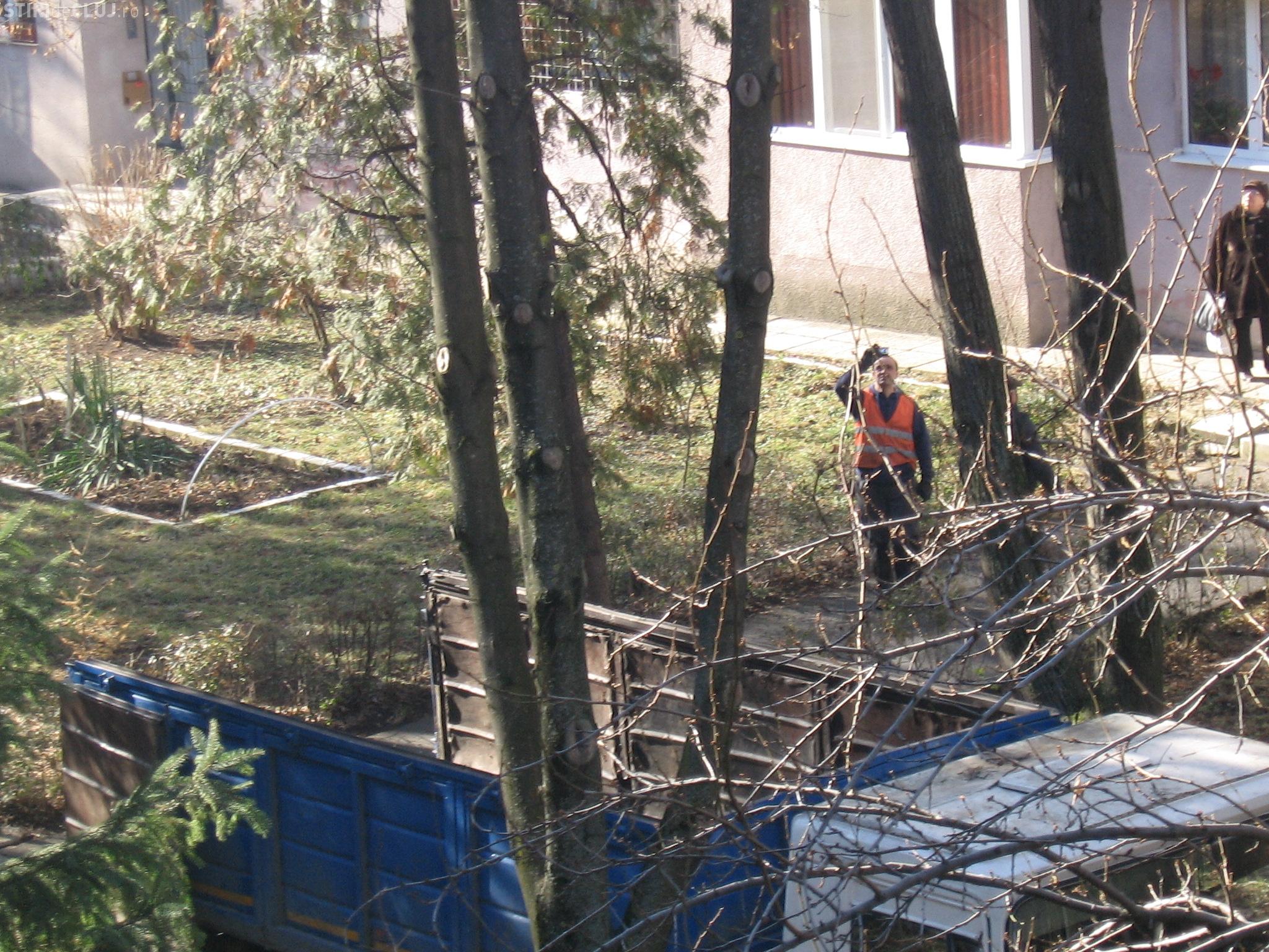 ”Pe strada Baița nr. 4, din cartierul Gheorgheni, au inceput sa se taie in aceasta amiaza, (n.red. marți după-amiază) niste copaci care au fost plantati cu zeci de ani in urma. Nu stiu daca persoanele respective au sau nu autorizatie, insa s-a incercat un astfel de demers si in primavara anului trecut si nu s-a mai concretizat din cauza unui scandal imens. Se pare ca au inceput in aceasta zi din nou, desi acesti arbori nu par sa prezinte un real pericol. Se pare ca este un capriciu al administratorului blocului cu nr. 4, de a disparea acesti copaci.