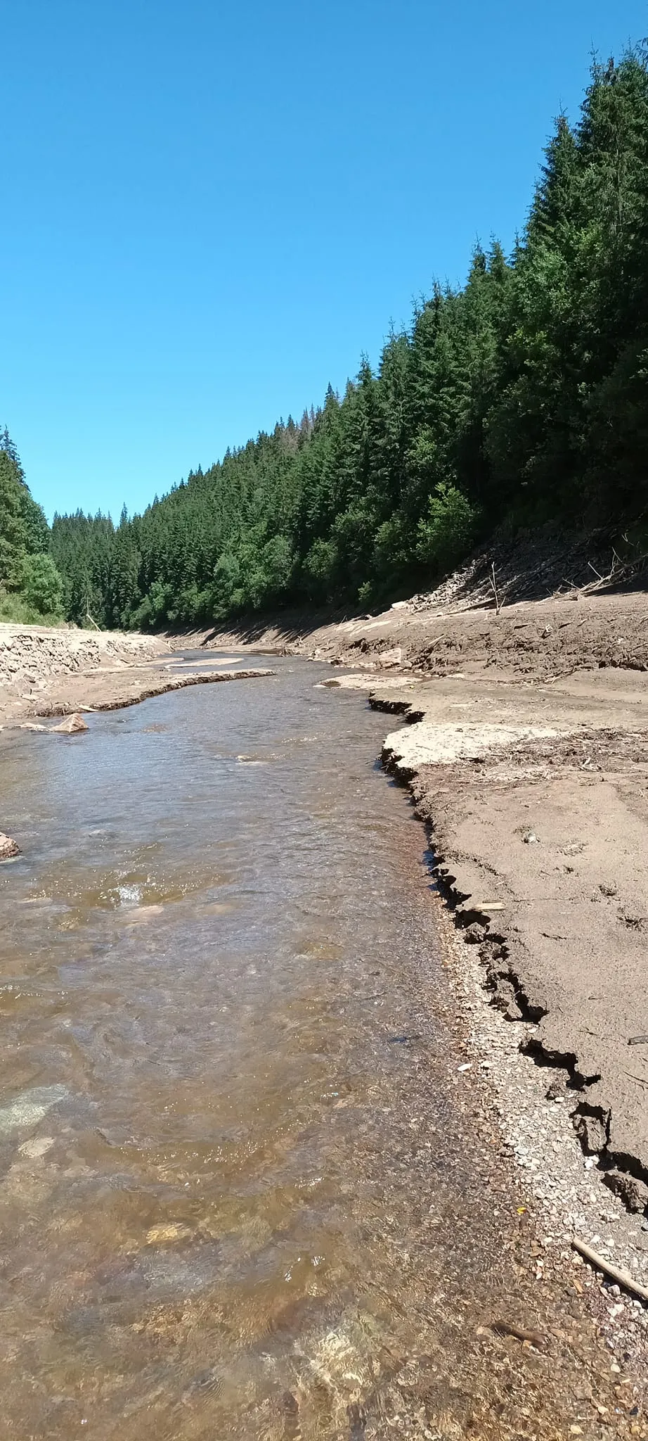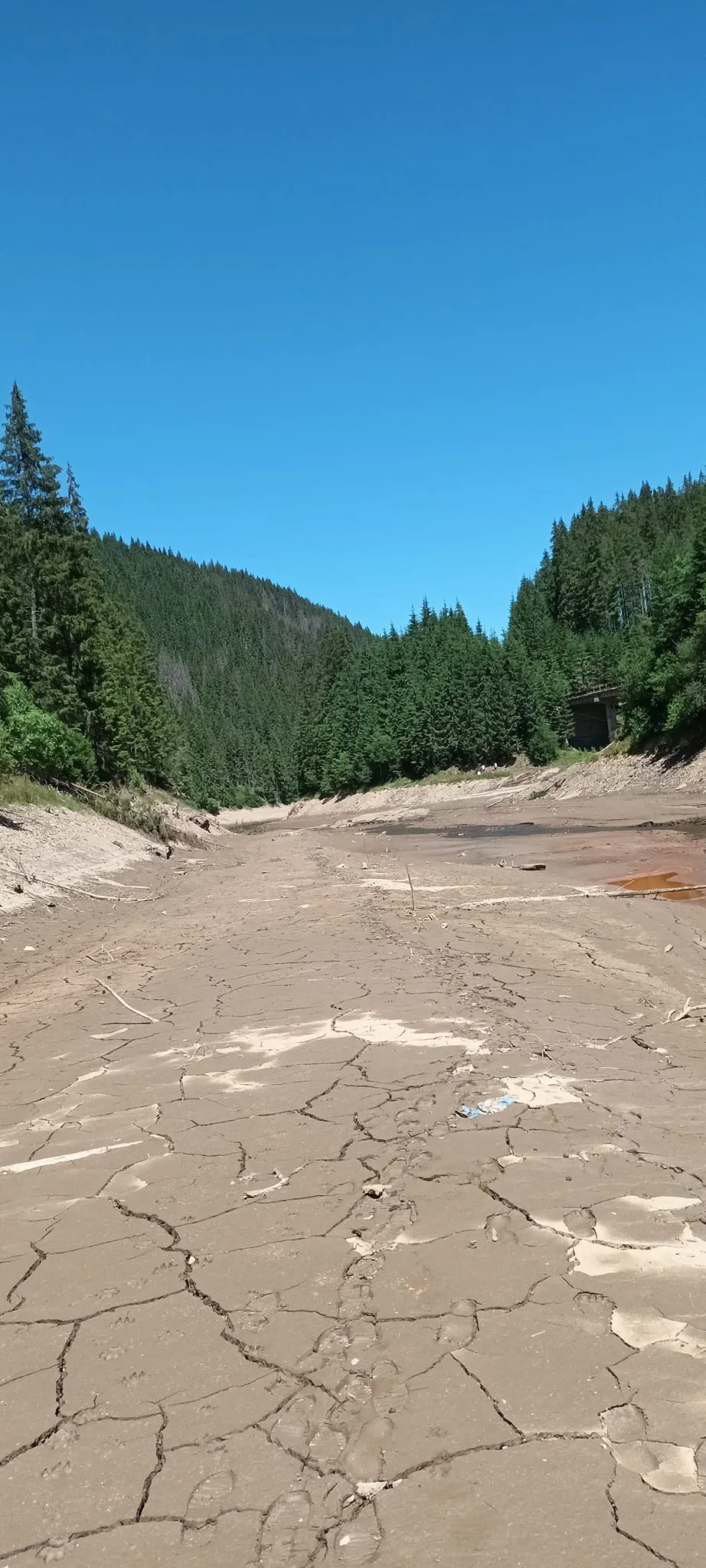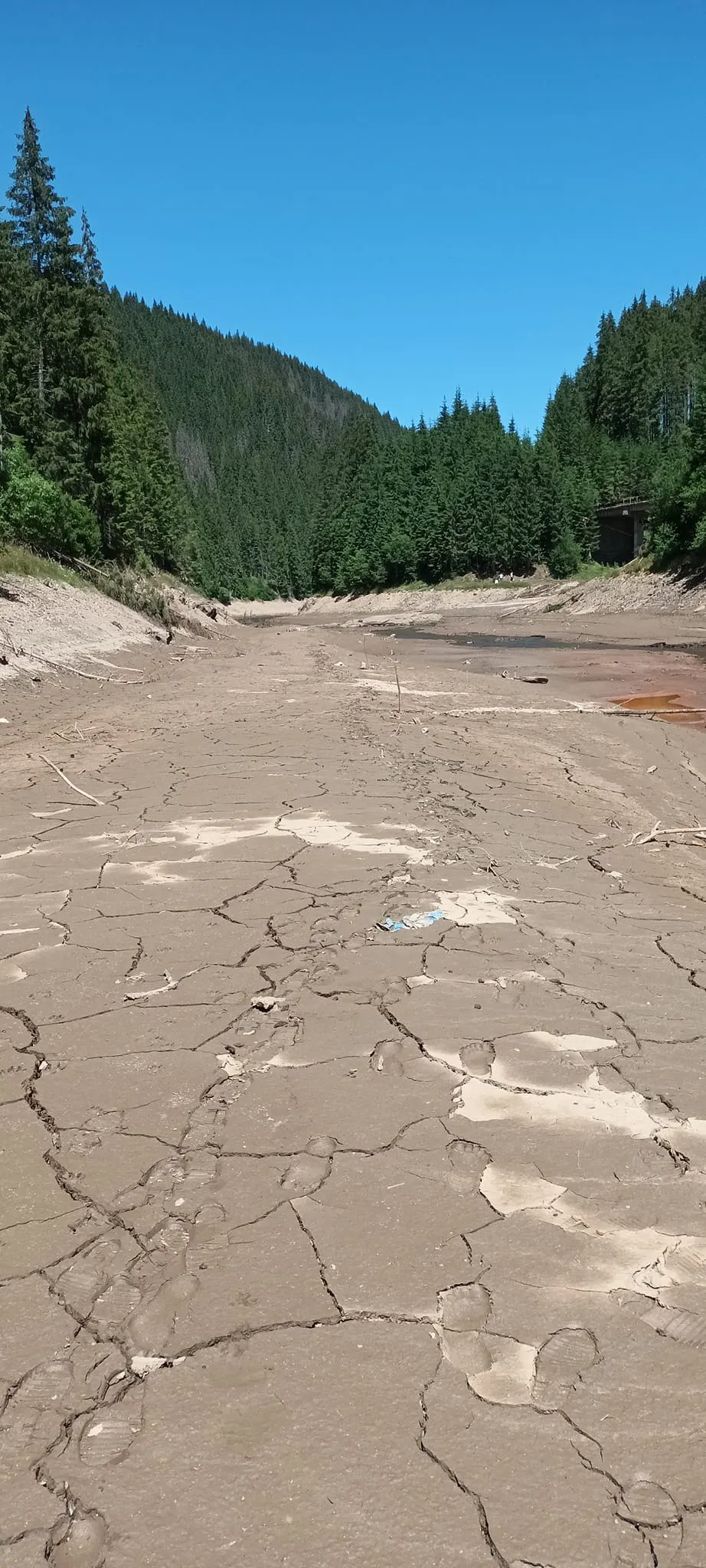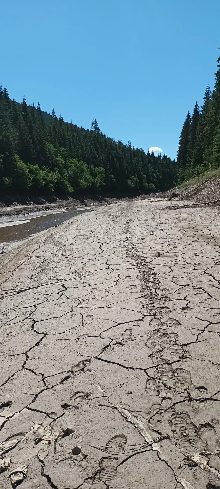 Un clujean care a fost la lac a fotografiat problemele de la fața locului. Fiind puține ploi, pârâurile care aprovizionează lacul cu apă au secat sau au debit foarte redus.
