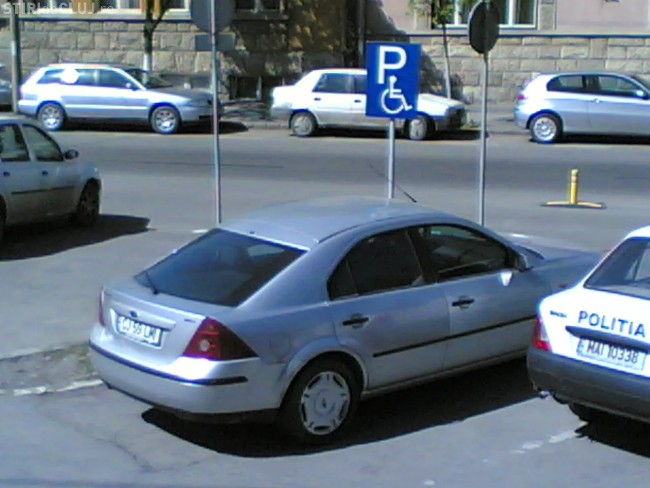 Fotografiile ne-au fost trimise de Alin Graur si au fost realizate in cursul zilei de luni, 25 aprilie. Autoturismul marca Ford Mondeo a fost parcat de comisarul sef Laurentiu Moldovan, pe locul de parcare pentru persoanele cu handicap.