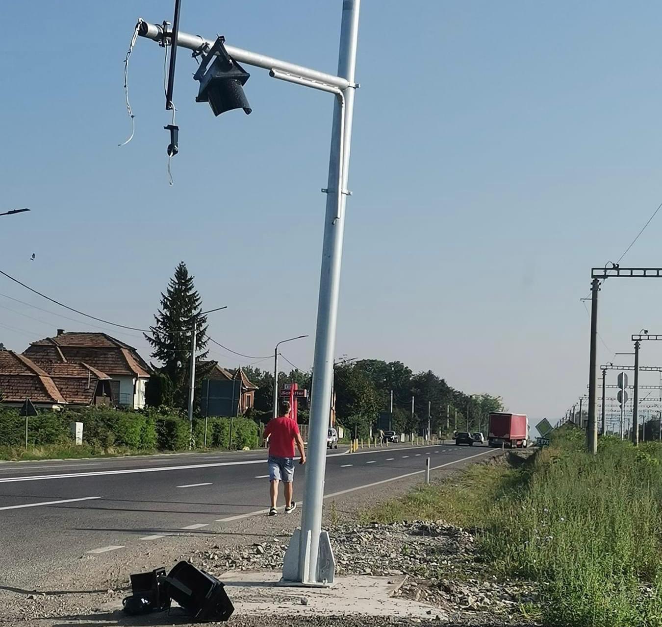 Semafor montat într-o comună din Cluj, doborât în mai puțin de o zi. Clujean: ,,Noi muncim nu gândim”