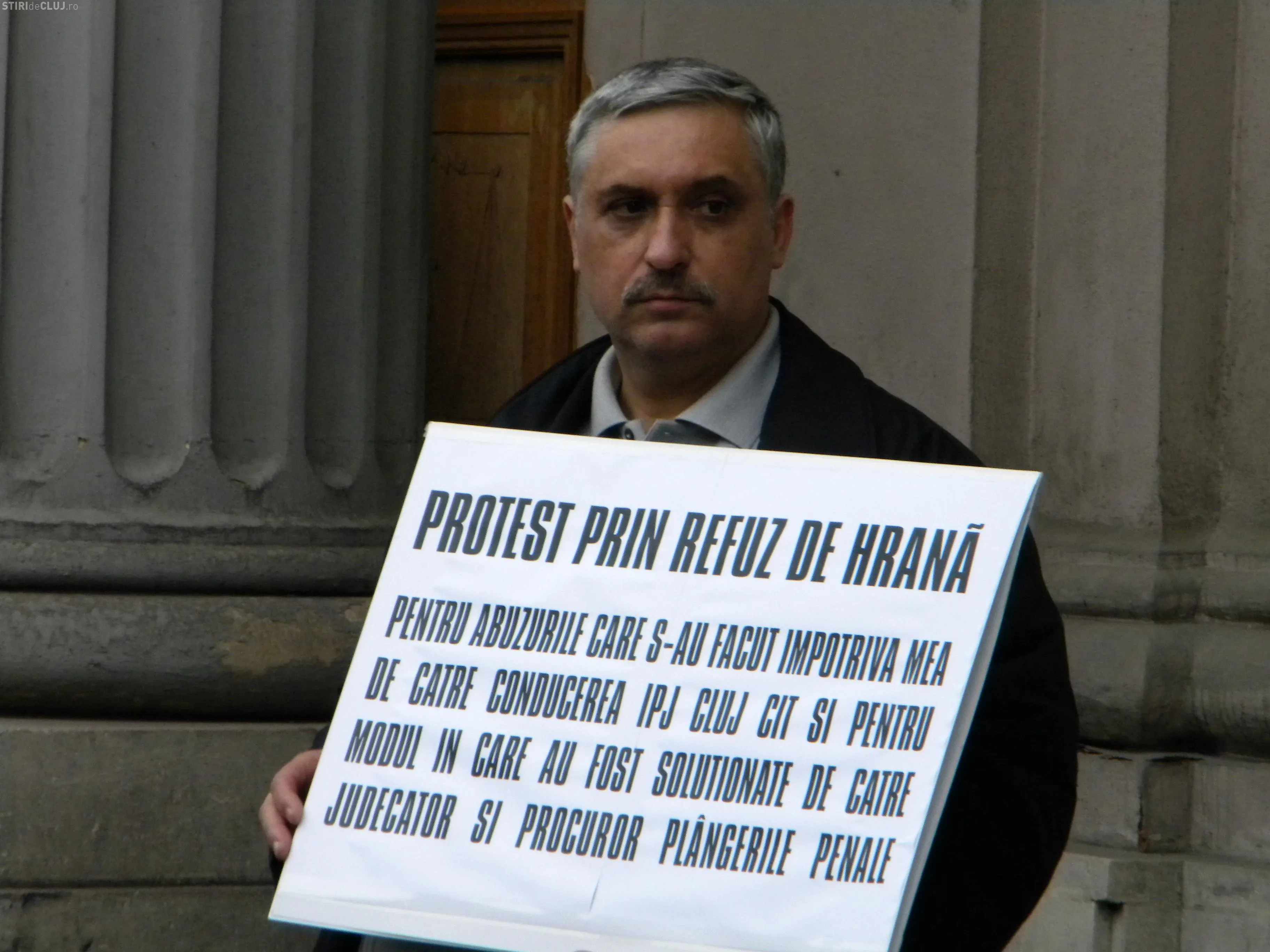 Polițistul Sever Legian face greva foamei în fața Judecătoriei Cluj-Napoca - FOTO și VIDEO