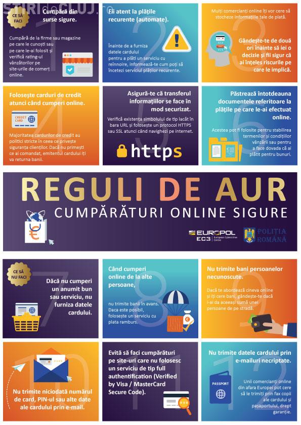 Astfel, pentru a cumpăra în siguranţă de pe internet şi a nu deveni victimă a fraudelor online, vă recomandăm să ţineţi cont de următoarele reguli: