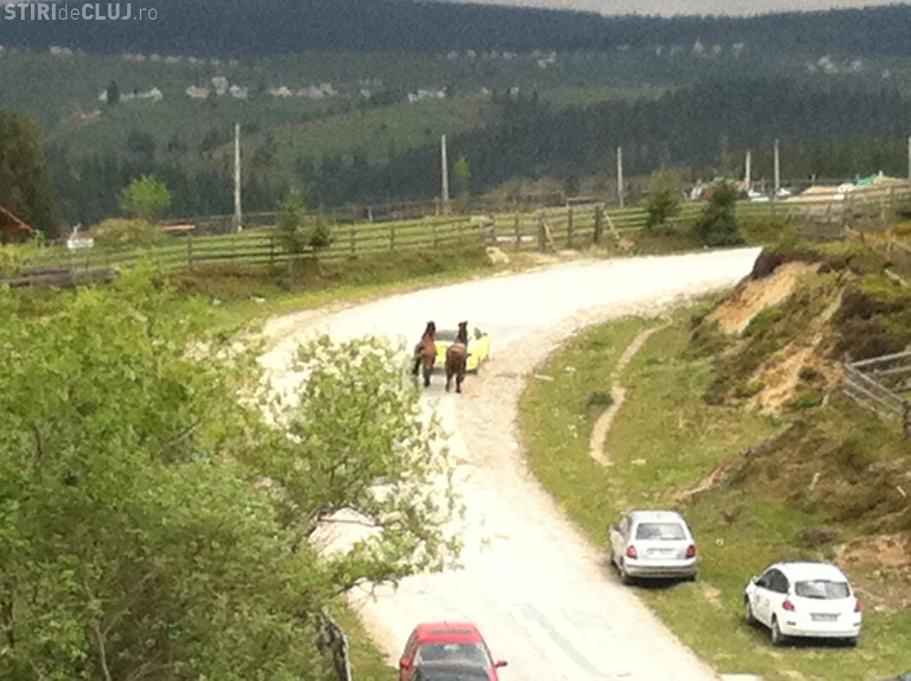 Și-a legat caii la Mazda și i-a tras după mașină prin Mărișel - VIDEO