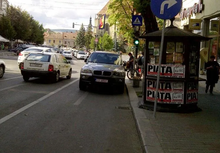 "Cel cu BMW-ul a parcat cred acolo, că nu vad bine dacă e sau nu în maşină, dar oricum nu numai că acolo blochează o bandă, lângă Libraria Universitatii, dar a intrat şi pe interzis acolo fiind sens unic dinspre strada Avram Iancu spre Matei Corvin", ne-a scris Mihai pe adresa redacţiei office@stiridecluj.ro