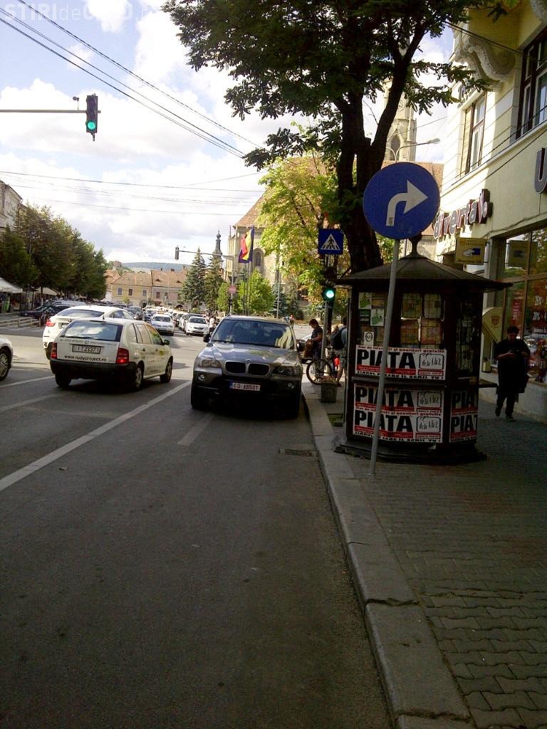 Şi-a parcat BMW-ul pe SENS UNIC şi a blocat o bandă de circulaţie FOTO ŞTIREA CITITORULUI