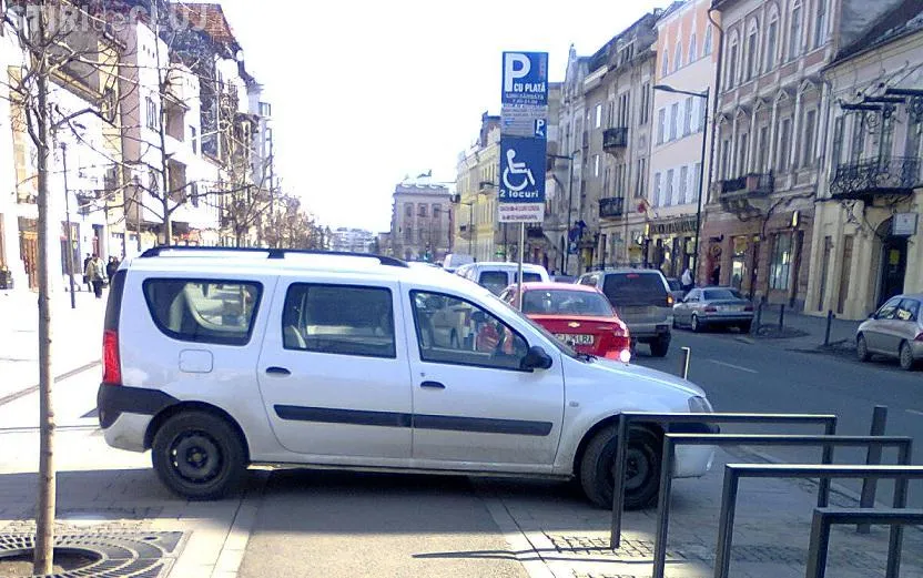 Si-a parcat masina direct pe pietonala de pe Eroilor FOTO STIREA CITITORULUI
