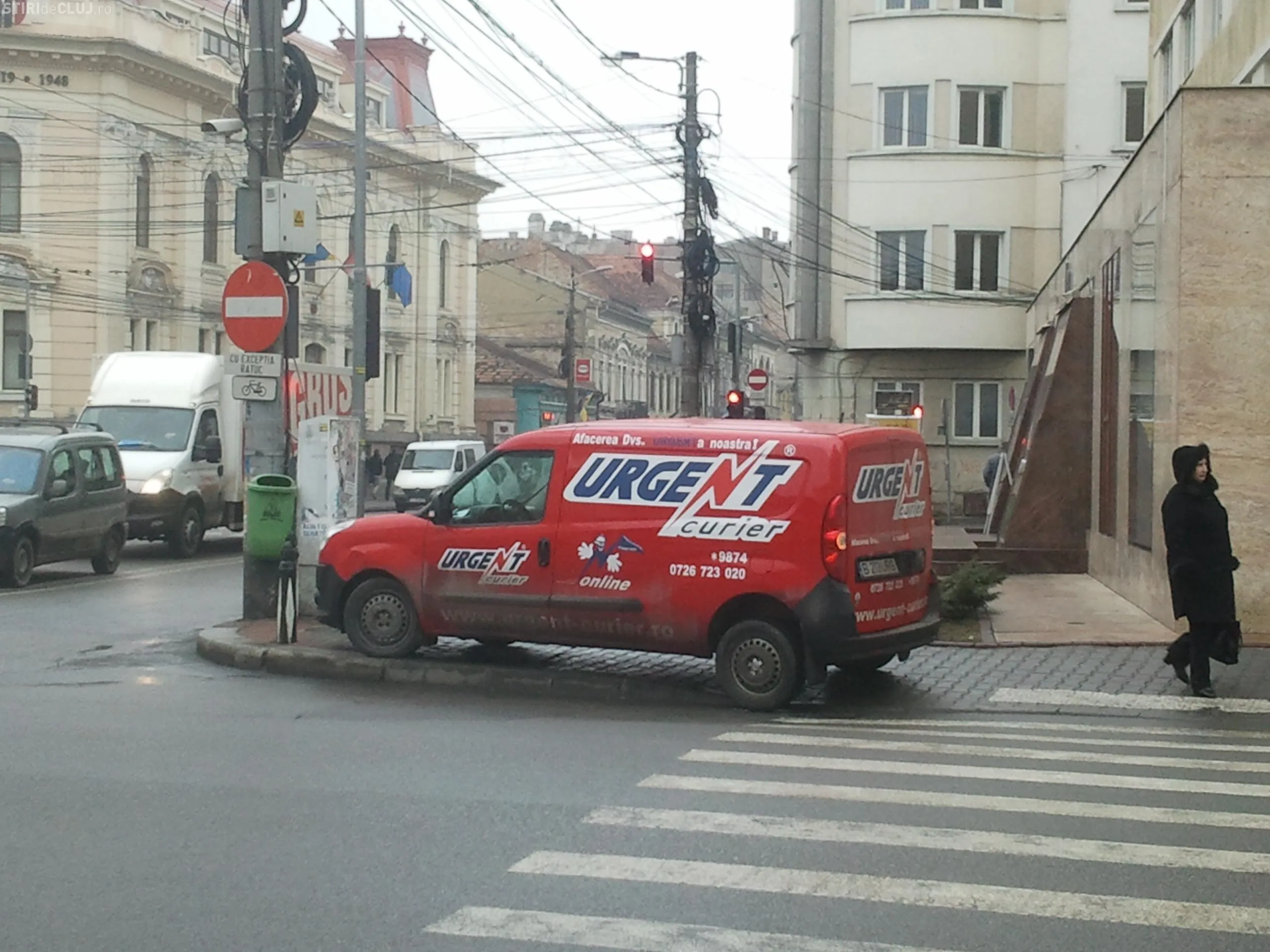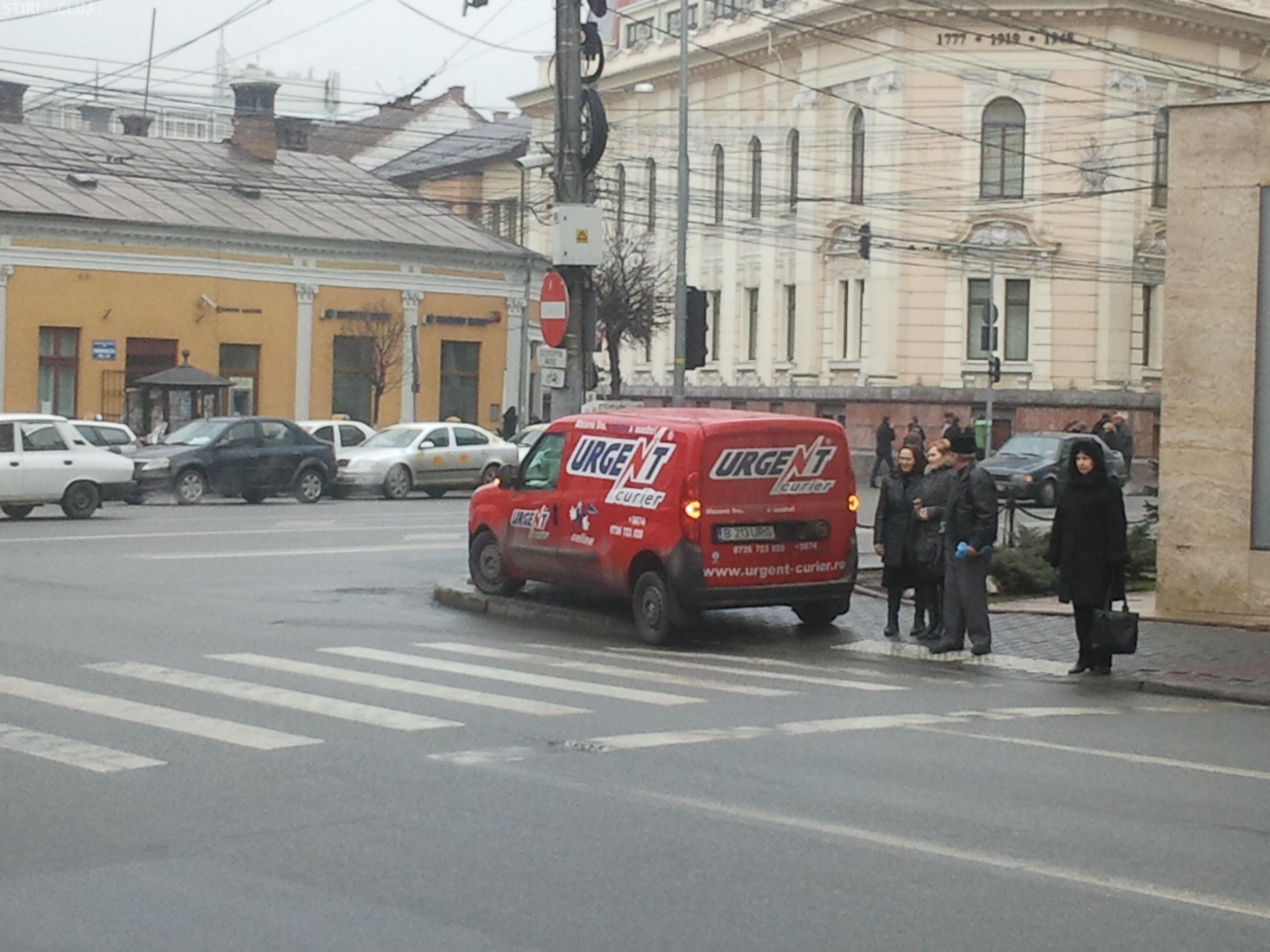 Grăbit, conducătorul auto a venit de pe strada Petru Maior, și și-a urcat mașina pe un colț trotuar, vis-a-vis de Primăria Cluj-Napoca, în dreptul biroului primarului Emil Boc.
