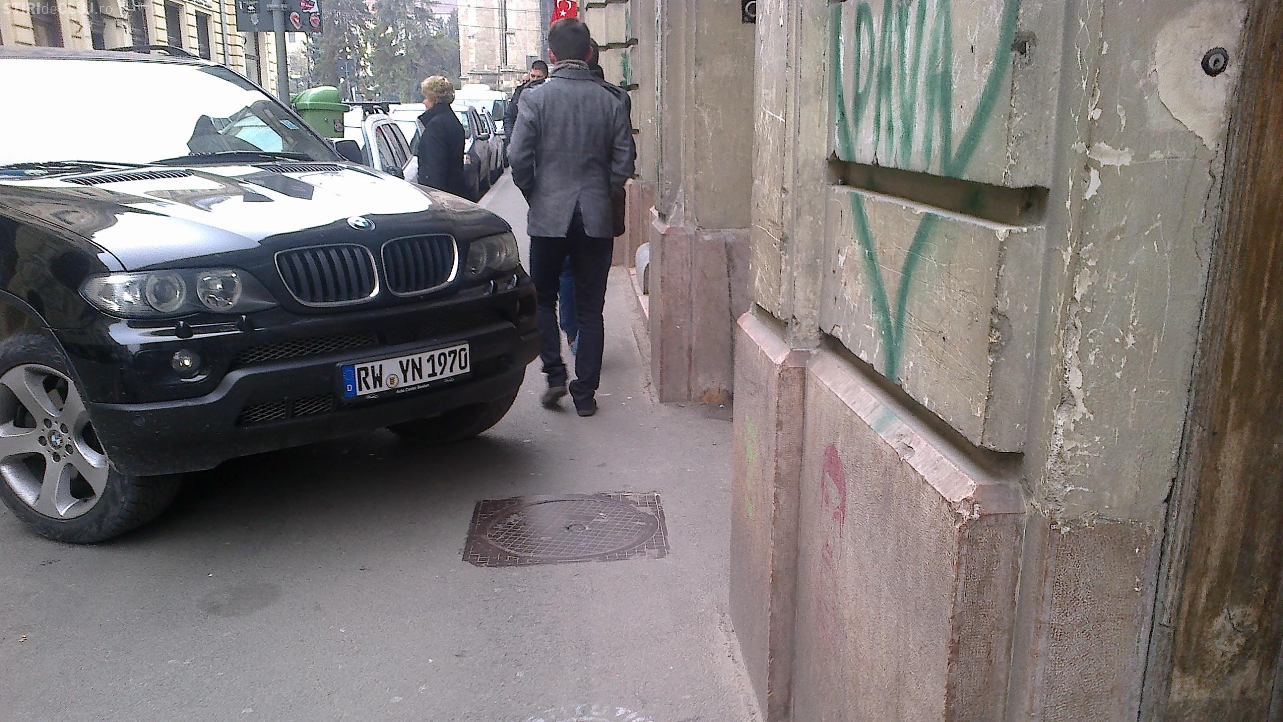 Șoferul unui BMW cu numere de Germania și-a parcat mașina de teren direct pe trotuarul de pe strada Iuliu Maniu.