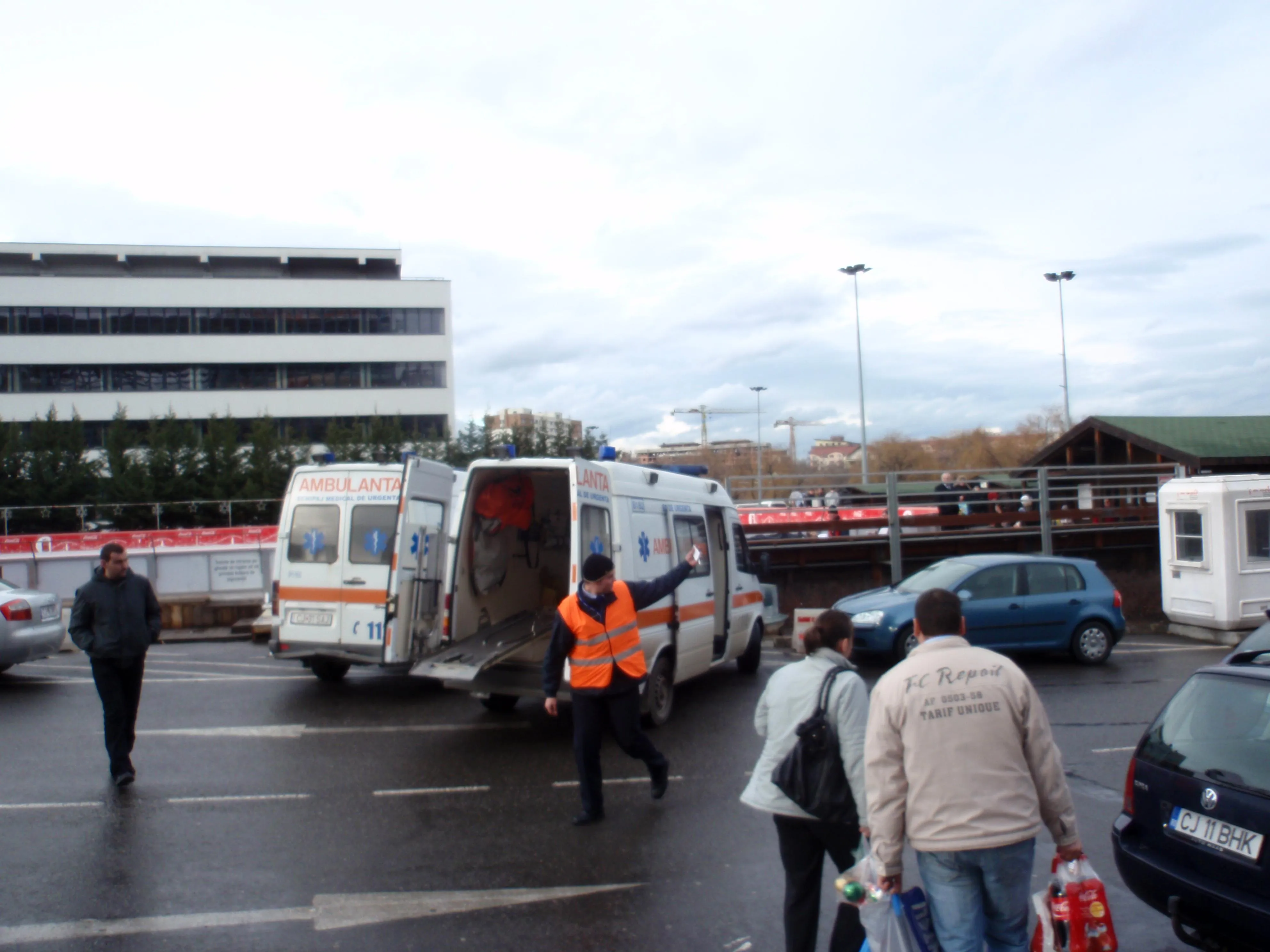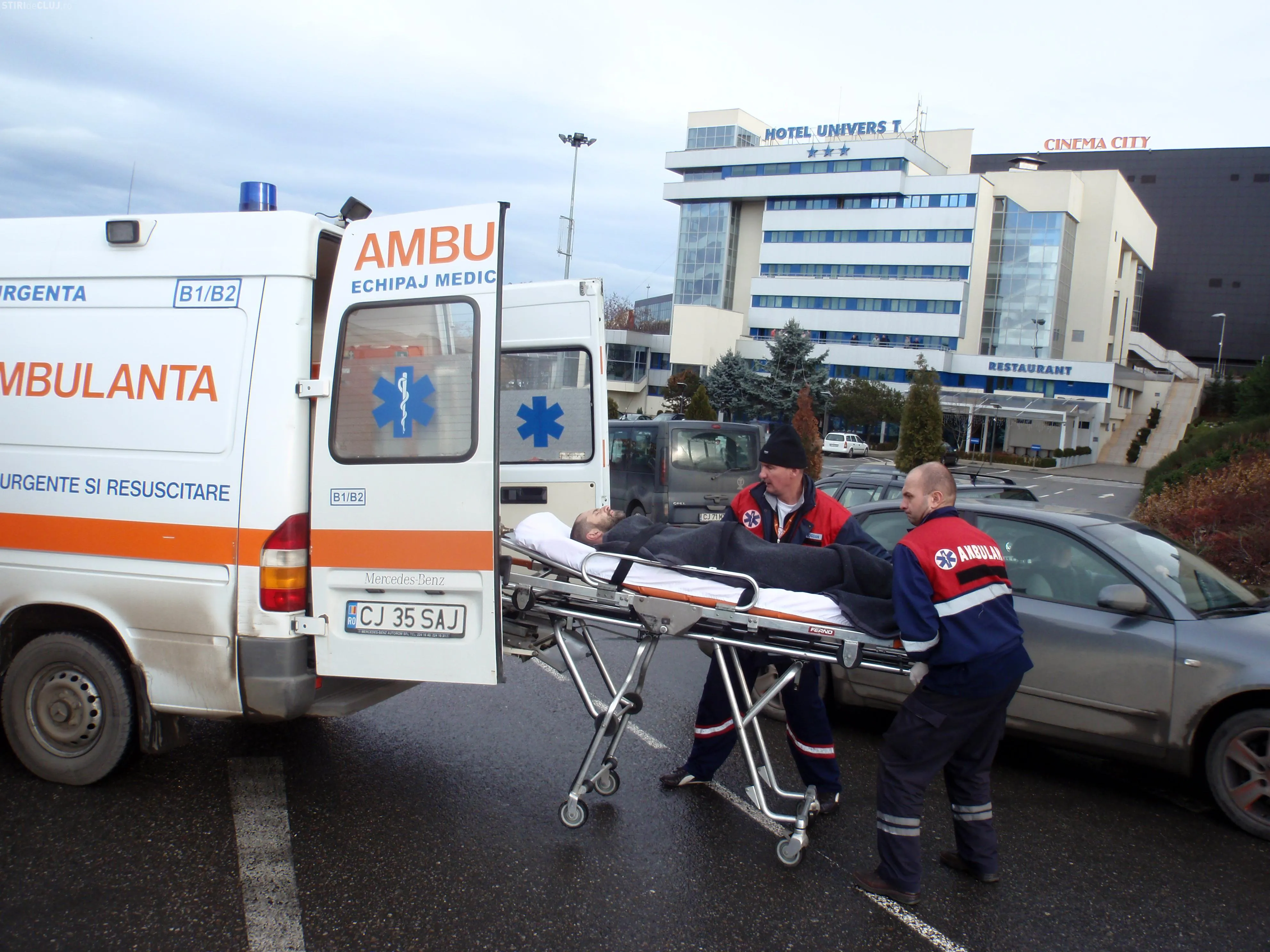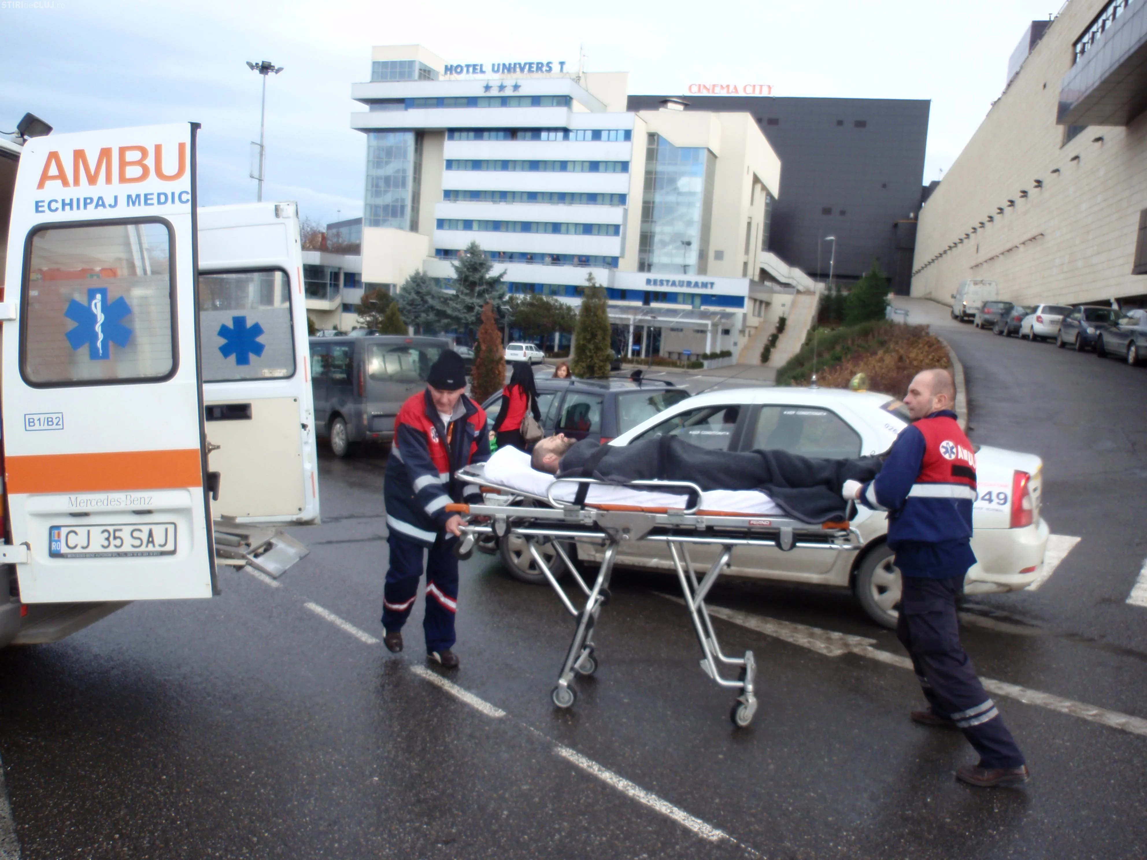 Doua ambulante si-au facut aparitia in zona parcarii, iar un echipaj a preluat victima si a transportat-o la Clinica de Ortopedie Cluj.