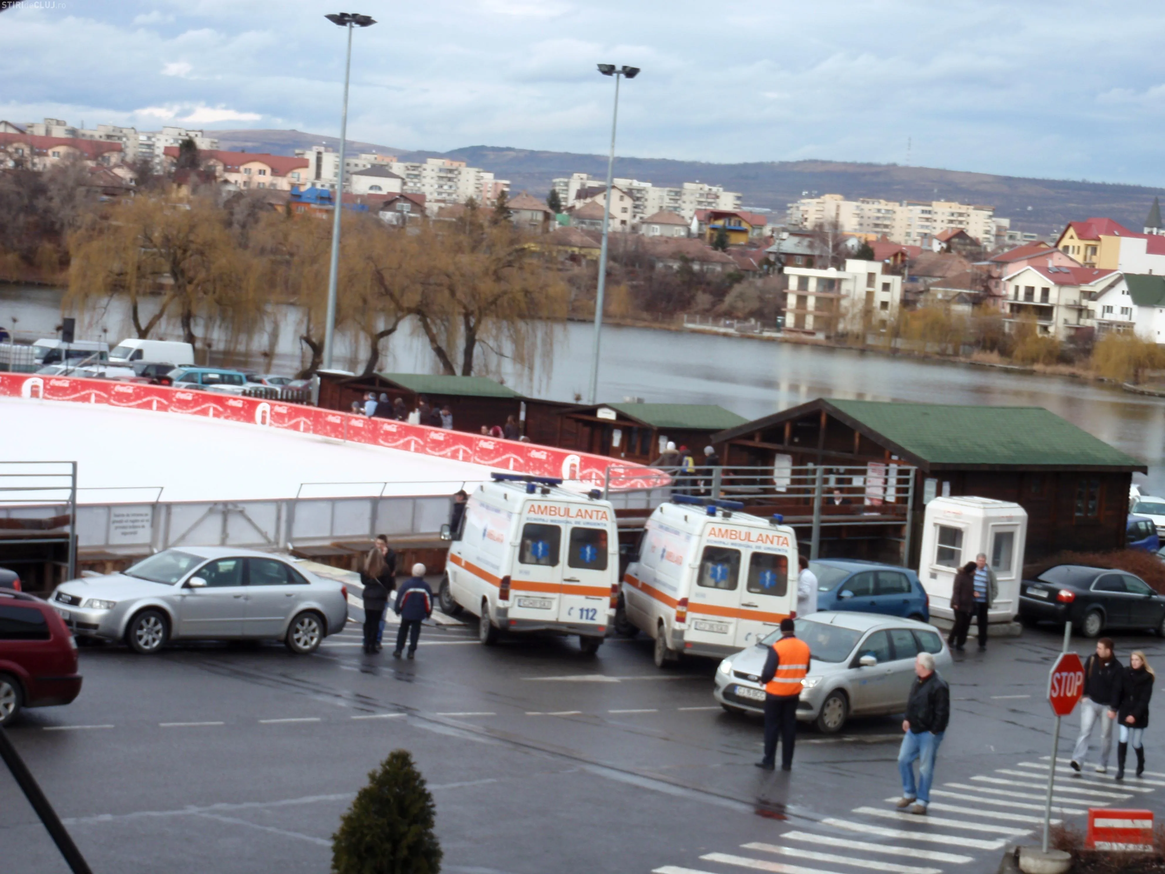 Un tanar si-a rupt piciorul pe gheata patinoarului de langa centrul comercial din Gheorgheni.