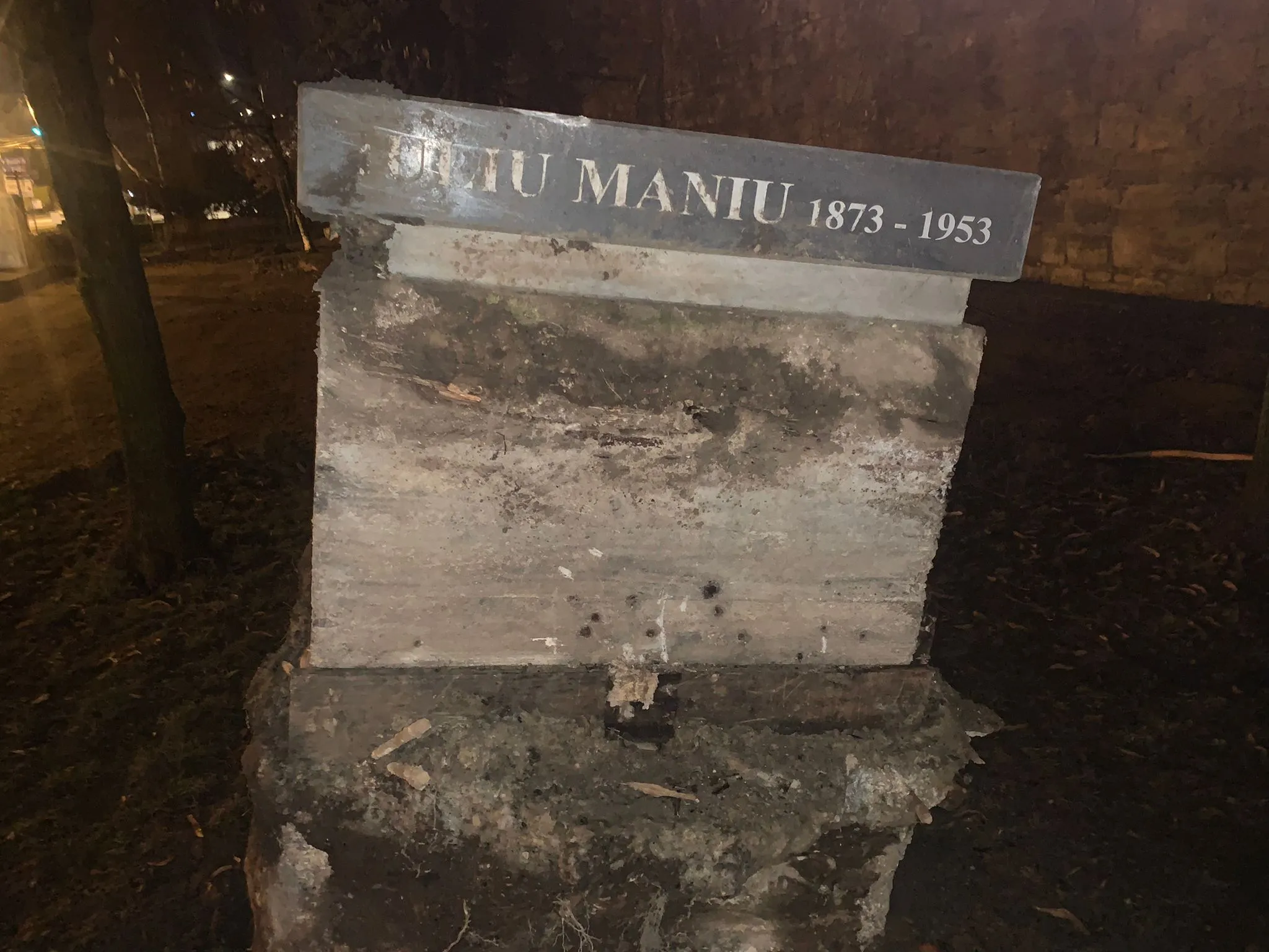 Statuia lui Iuliu Maniu a fost luată de pe soclu și aruncată pe iarbă, lângă zidul istoric de la Bastionul Croitorilor. Asociațiile culturale s-au sesizat, pentru că aduce atingere memoriei marelui om de stat.