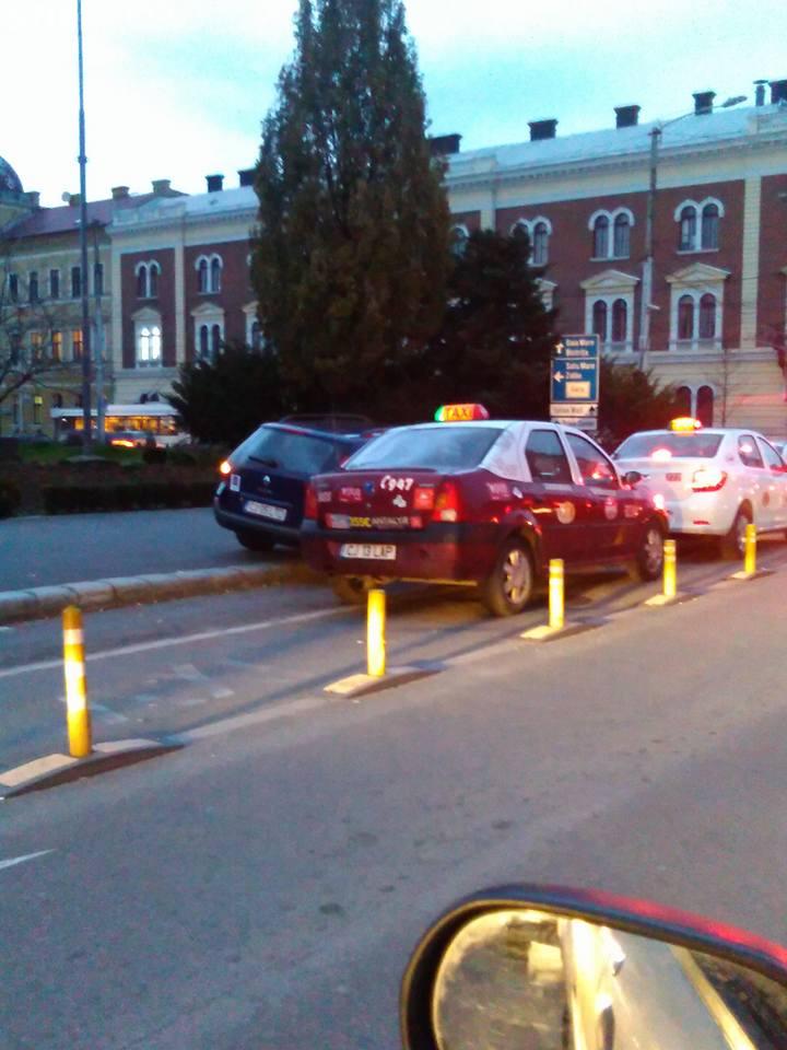 Un astfel de caz a fost semnalat în standul din fața Teatrului Național din Cluj-Napoca, unde un șofer a parcat jumătate pe trotuar, jumătate pe standul de taximetre.