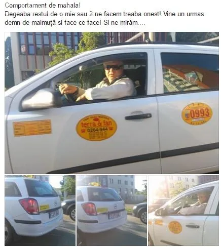 Șicanare în trafic finalizată cu un gest de ”mahala” din partea unui taximetrist - FOTO