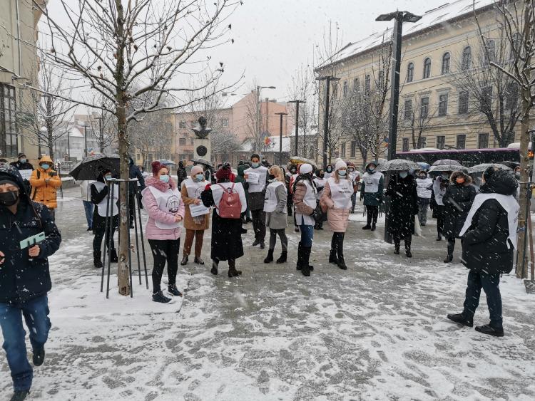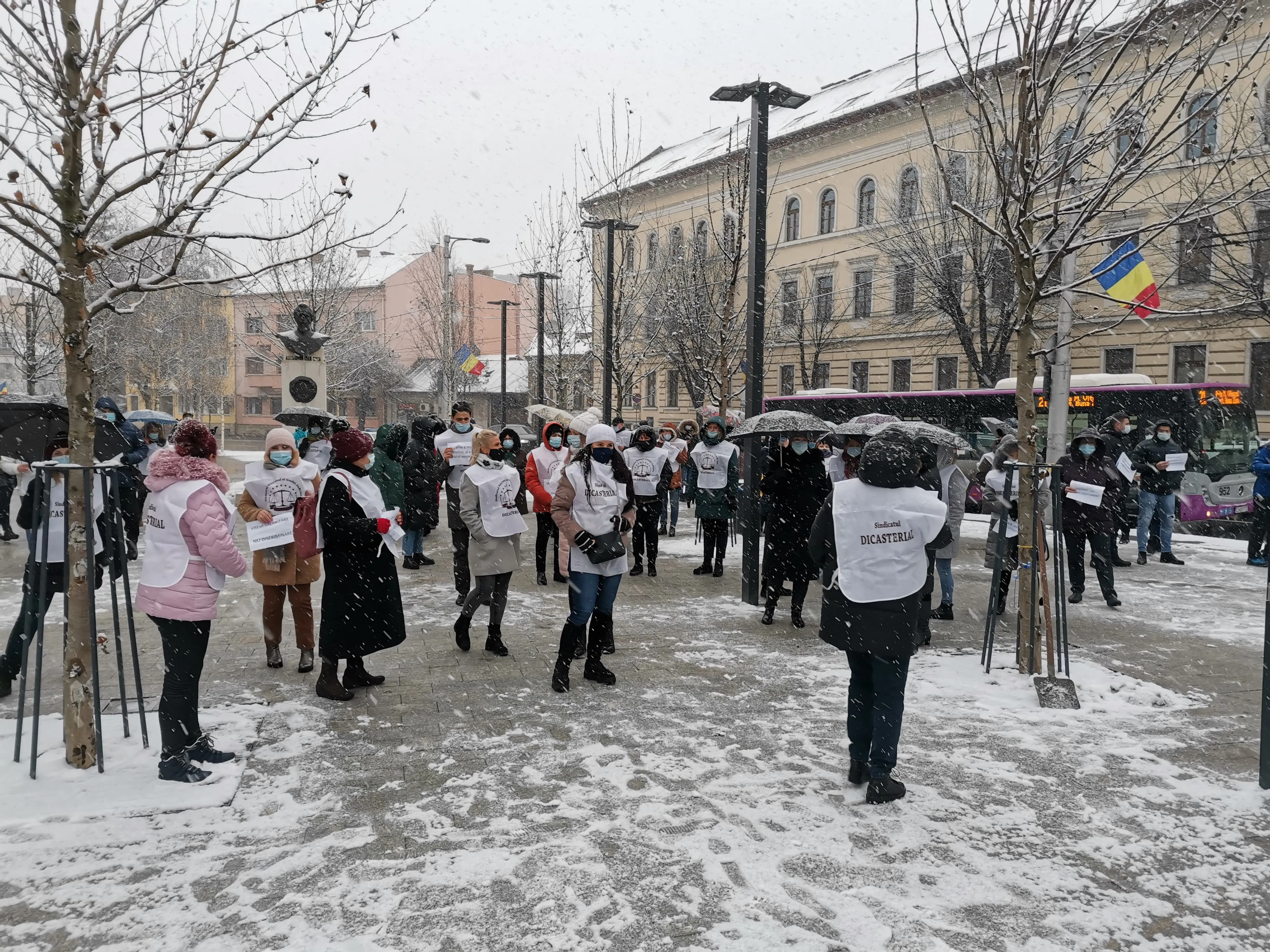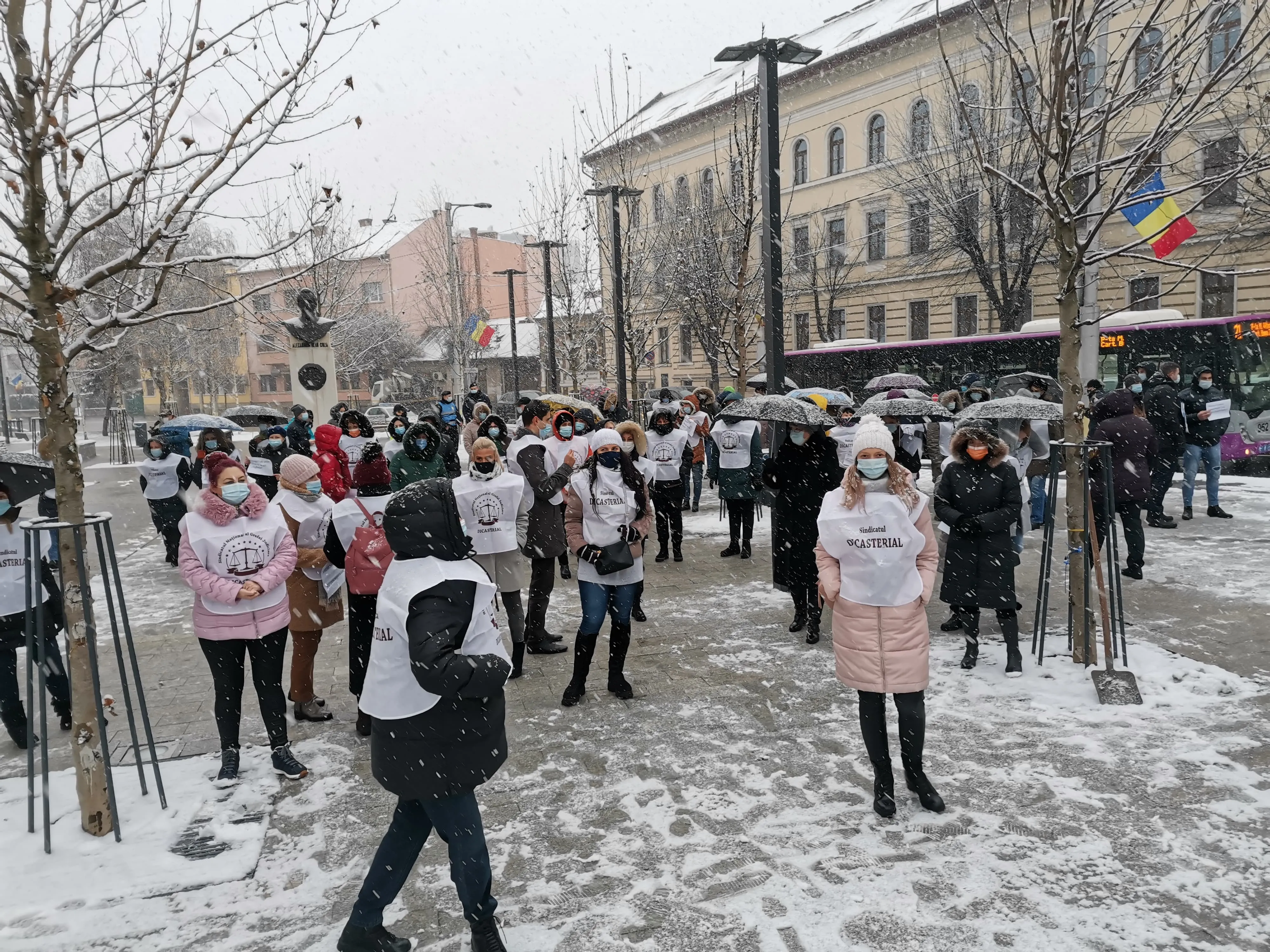 Sindicaliștii au protestat miercuri la Cluj-Napoca față de nedreptățile salariale din sistem - VIDEO