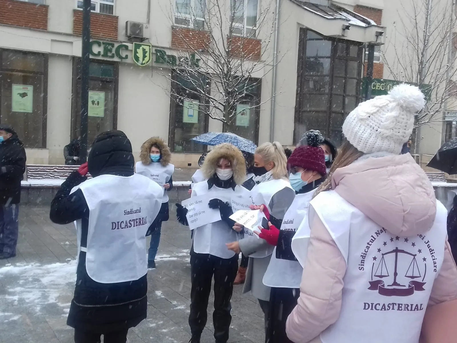 Sindicatele lucrătorilor din Penitenciare, grefierii și polițiștii au protestat miercuri, 13 ianuarie, la Cluj, în fața Prefecturii față de înghețarea salariilor din domeniul public.