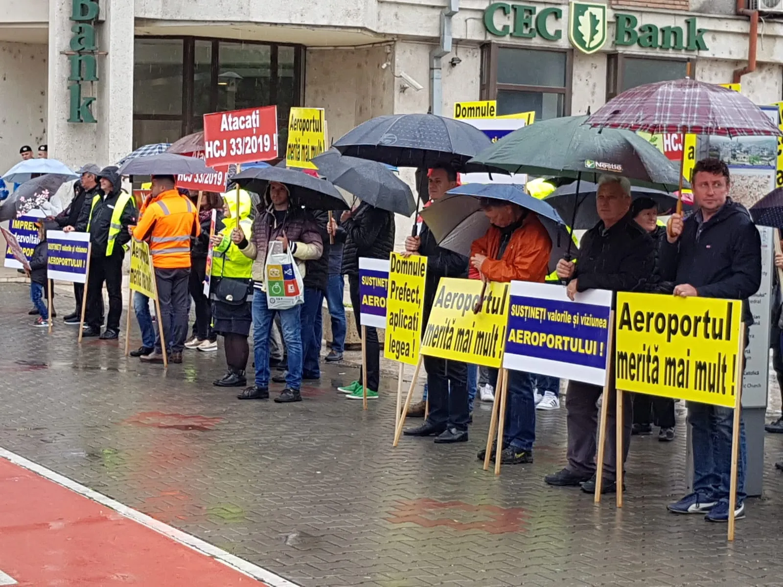 Sindicaliștii de la Aeroportul Cluj protestează în fața Prefecturii Cluj, cerând prefectului Aurel Cherecheș să intervină în războiul cu noul Consiliu de Administrație.