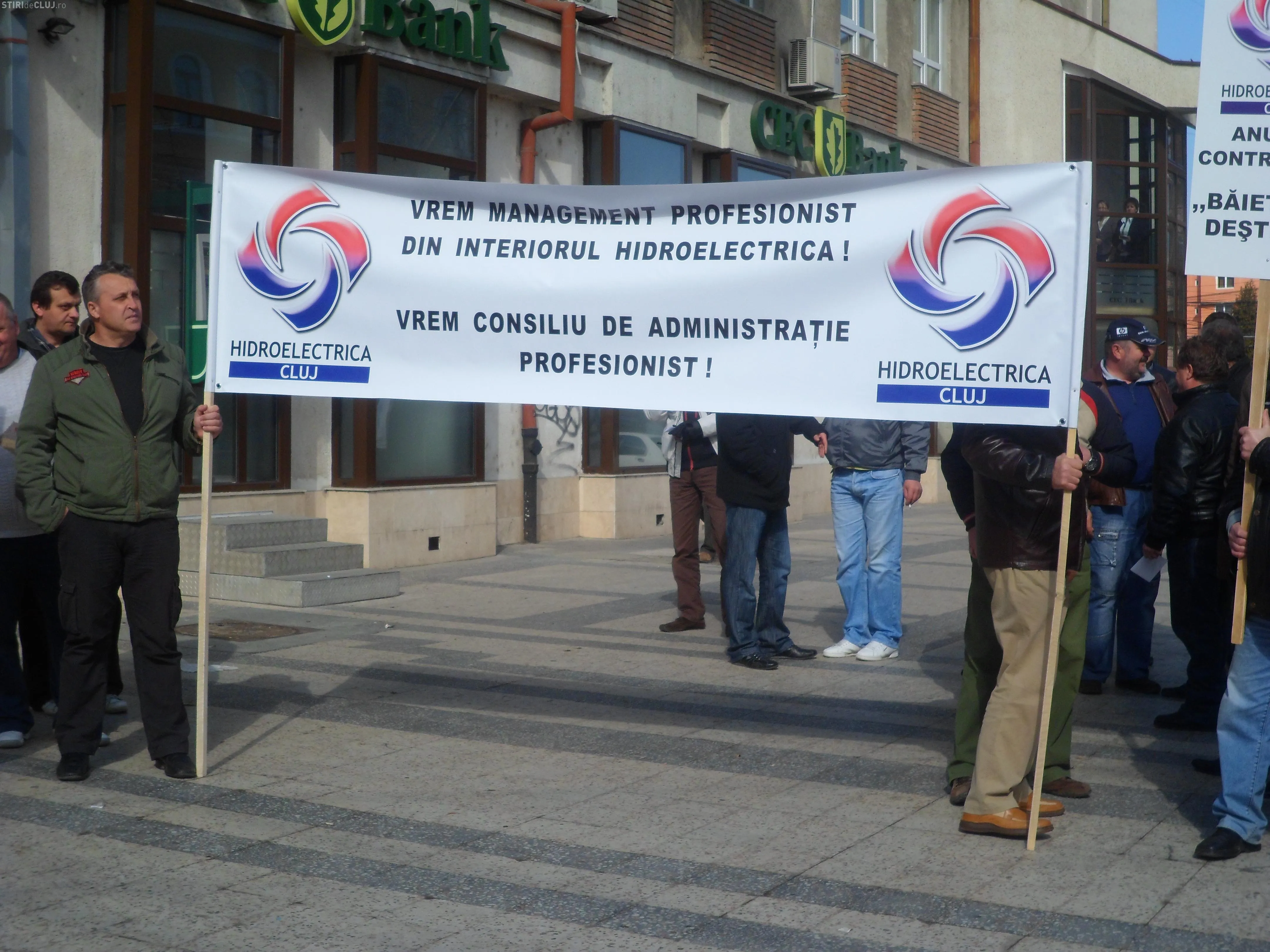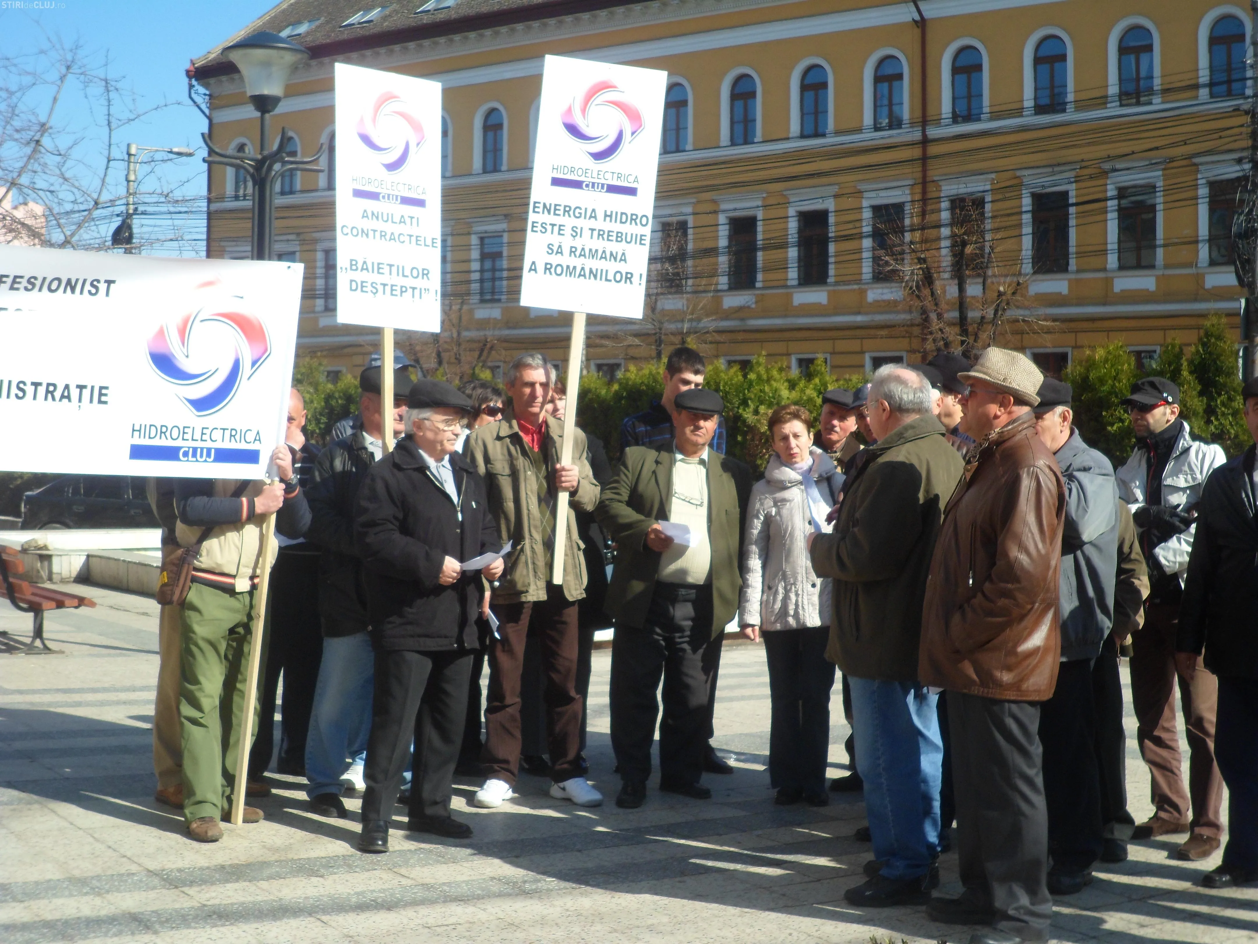 Un numar de aproximativ 30 de sindicalisti ai companiei Hidroelectrica au pichetat azi, 28 martie, Prefectura Cluj si au cerut ca societatea sa nu fie privatizata.