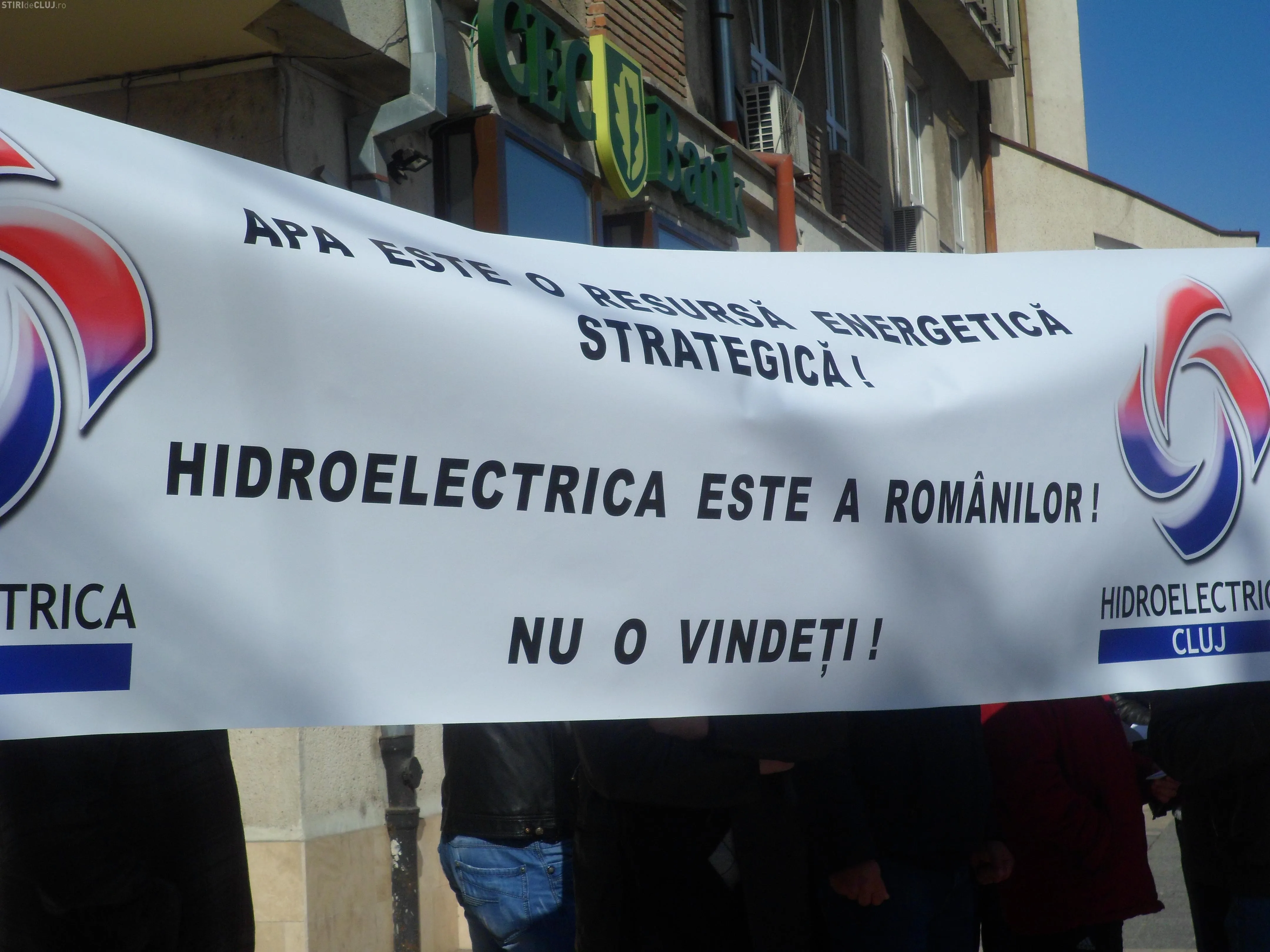 Cei aproximativ 30 de sindicalisti au scandat: "Puterea noastra-i apa!", "Apa nu se vinde!", "Energia Hidro trebuie sa ramana a romanilor".